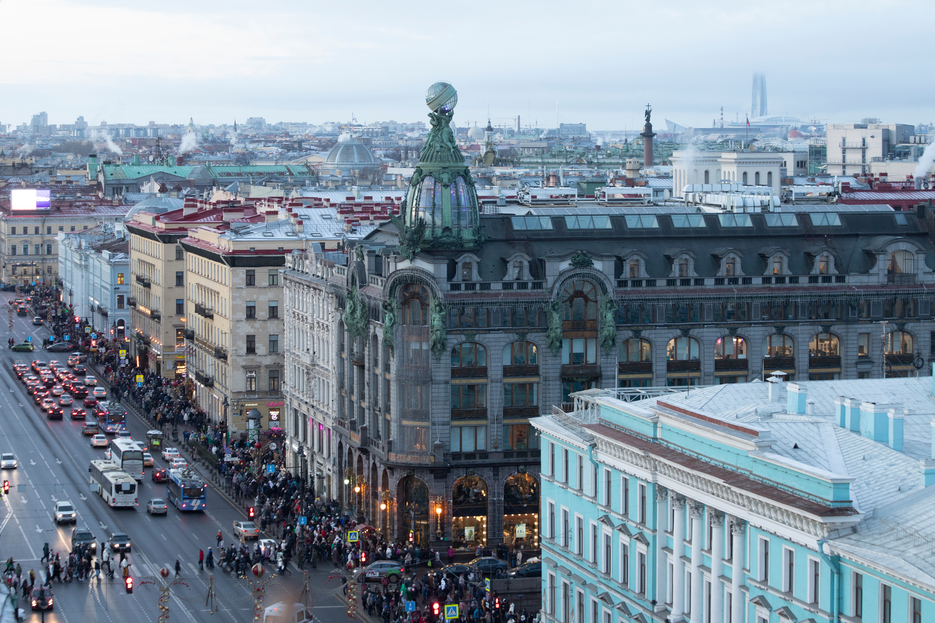 • Смотровая площадка с видом на Невский проспект и Гостиный двор есть в Музее-фотосалоне имени Карла Буллы. Стоимость билета в музей и на площадку — 350 рублей.
