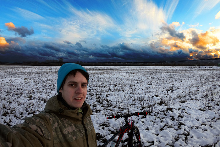 Редко кого-то встречаю: пару раз видел кабанов; волков и медведей даже не слышал. Удивительно встречать охотников — они часто выезжают в леса в выходные и живут в своих землянках. Пару раз я в таких ночевал: они все старые, уютные, с туалетами на улице. Однажды в такую ночевку всю ночь прообщался с охотниками: в компании были и дети, и старички по 80 лет — абсолютно разные люди. Но все они этой охотой живут: у одного из них и отец, и дед, и прадед были охотниками — столько увлекательных историй рассказывал, что я сидел, ел и понимал: если буду рассказывать о себе — скука.