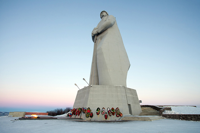 Монумент в виде фигуры солдата — своеобразный символ Мурманска и один из самых больших памятников страны. Мемориал посвящен солдатам, которые во время Великой Отечественной войны защищали Заполярье.