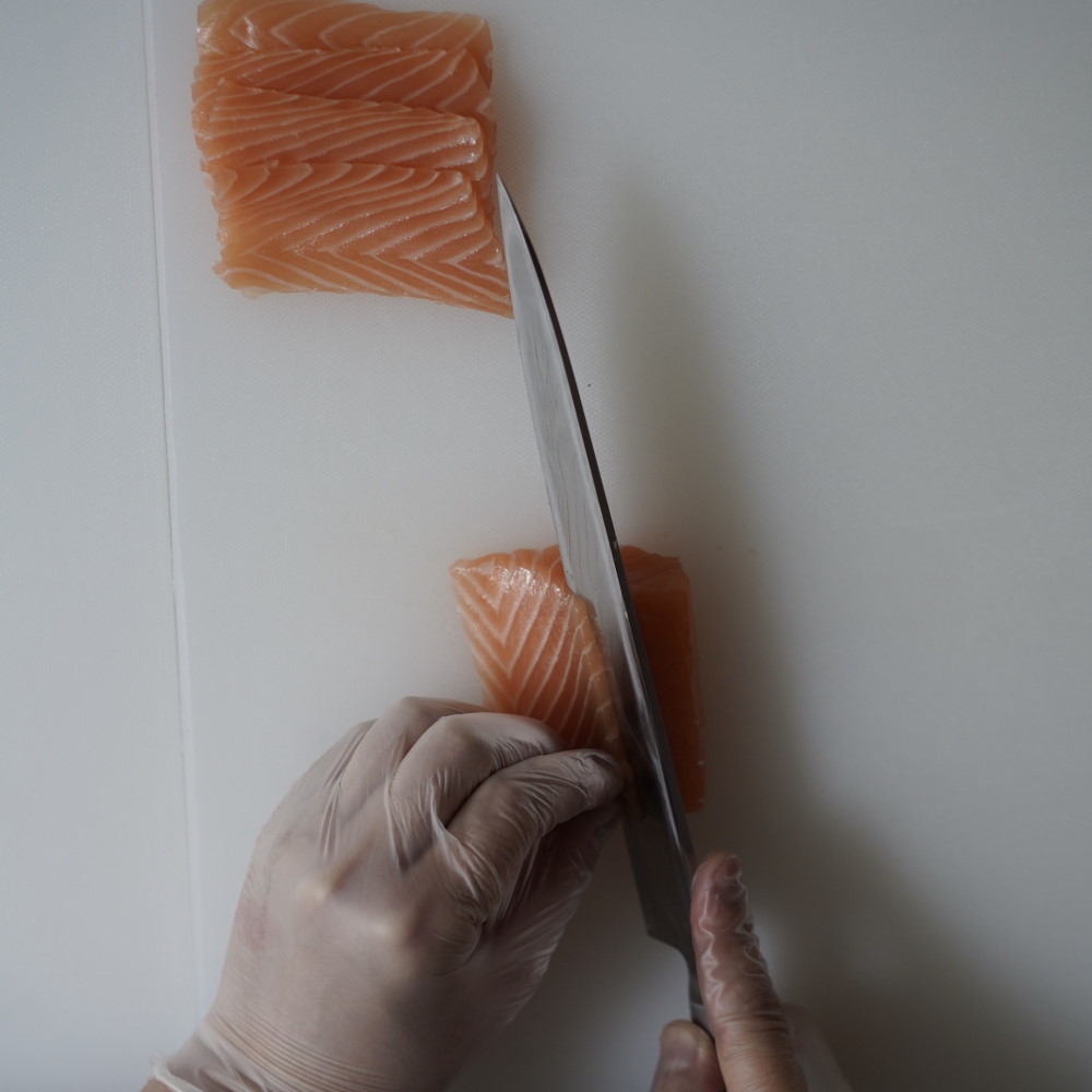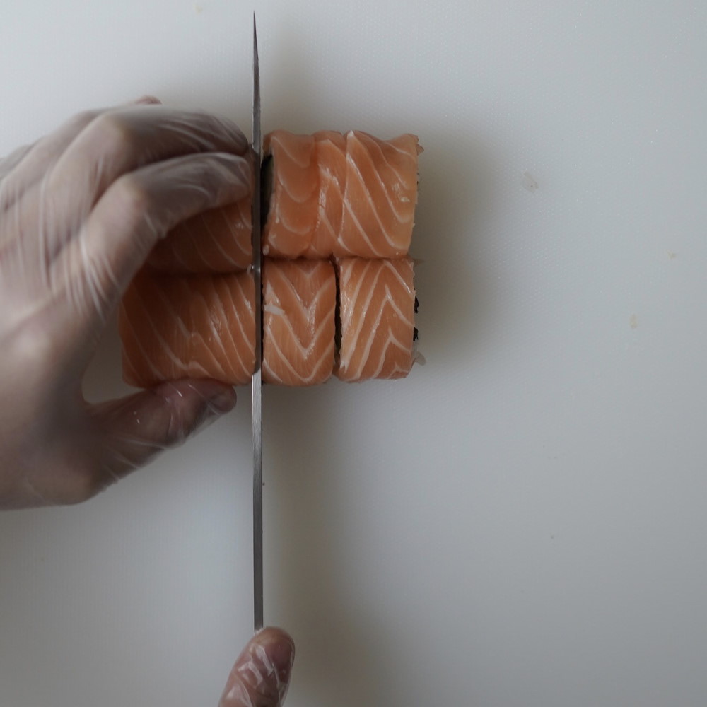 В ресторанах ролл обычно нарезают на шесть или восемь частей