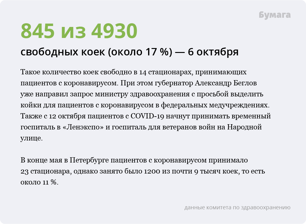 «Бумага» показывает главные цифры, позволяющие судить об эпидемиологической ситуации в городе, — и сравнивает их с весенними показателями.