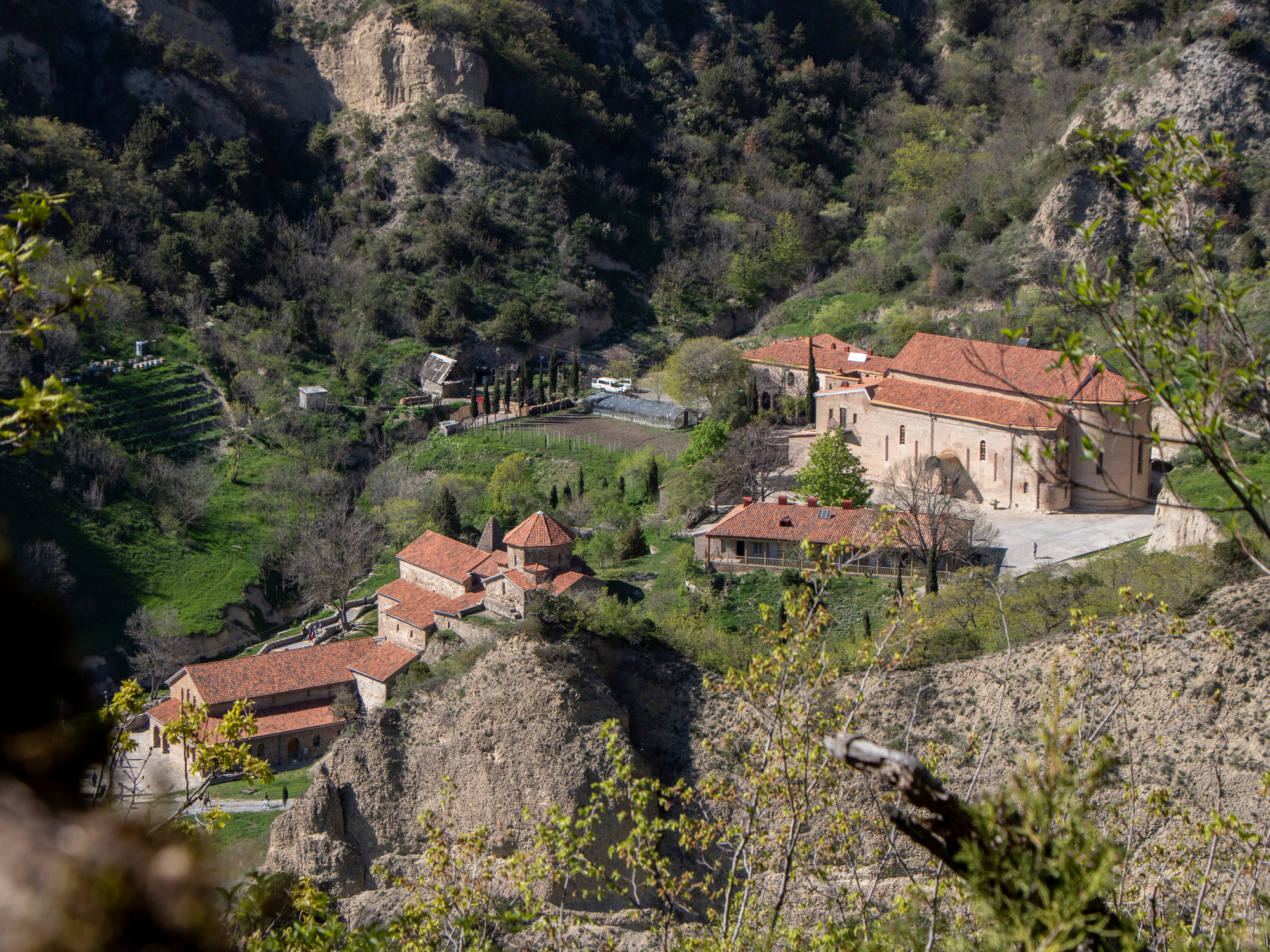 Гораздо более любопытное место для визита — монастырь Шиомгвиме в 8 километрах от Мцхета. Полторы тысячи лет это была крупнейшая в Грузии монашеская община — порядка 2000 иноков. Названа обитель по имени основателя — святого Шио, одного из Ассирийских отцов. Он сперва жил здесь в пещере на склоне горы, а затем — стал затворником, переселившись в специально вырытый колодец. Даже если вам уже опостылели храмовые здания разных эпох, не поленитесь заехать в Шиомгвиме. Вокруг главного монастырского храма с удобным заездом и парковкой расходятся тропки, подходящие не только для паломничества, но и для светского хайка с пикником.