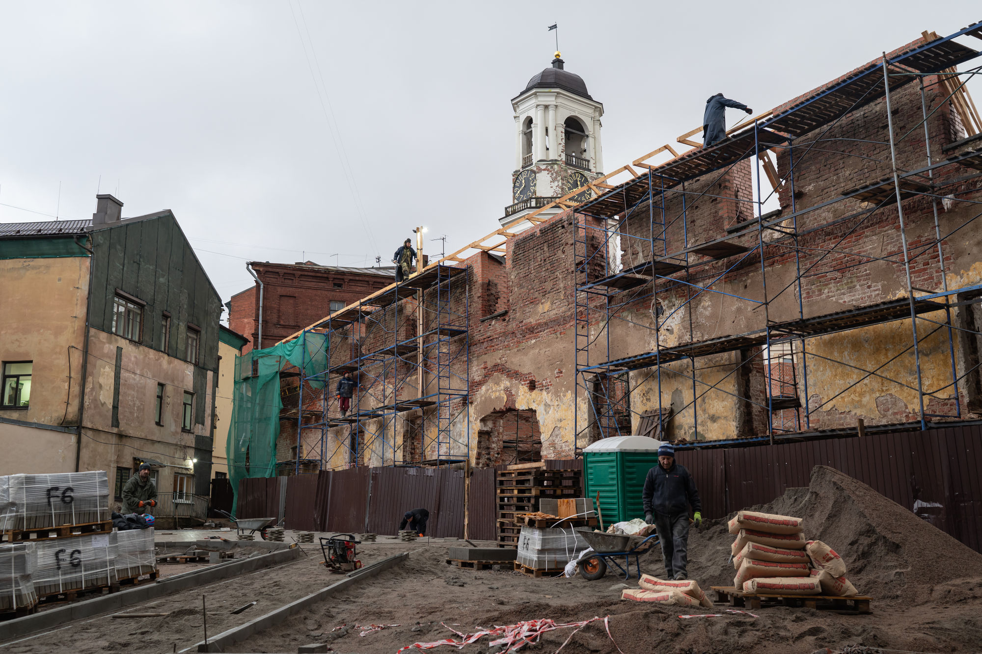Реставрация выборгской архитектуры идет в основном за государственный счет. С 2015 года, когда началось восстановление городского центра, он точно стал фотогеничнее. Подрядчики успели подновить фасады, части средневековых построек и нескольких зданий в стиле модерн. К работам у местных жителей и петербургских градозащитников немало претензий. За фантазийность активисты ругали реконструкцию Монрепо, на некоторых объектах — в том числе башне Олафа и модерновом «дворце Пиетинена» — работы пришлось переделывать по несколько раз. А порой рабочие просто уничтожают исторические детали, которые не включены в проект и не кажутся на первый взгляд ценными. Так было, например, с росписями в доме Портана.