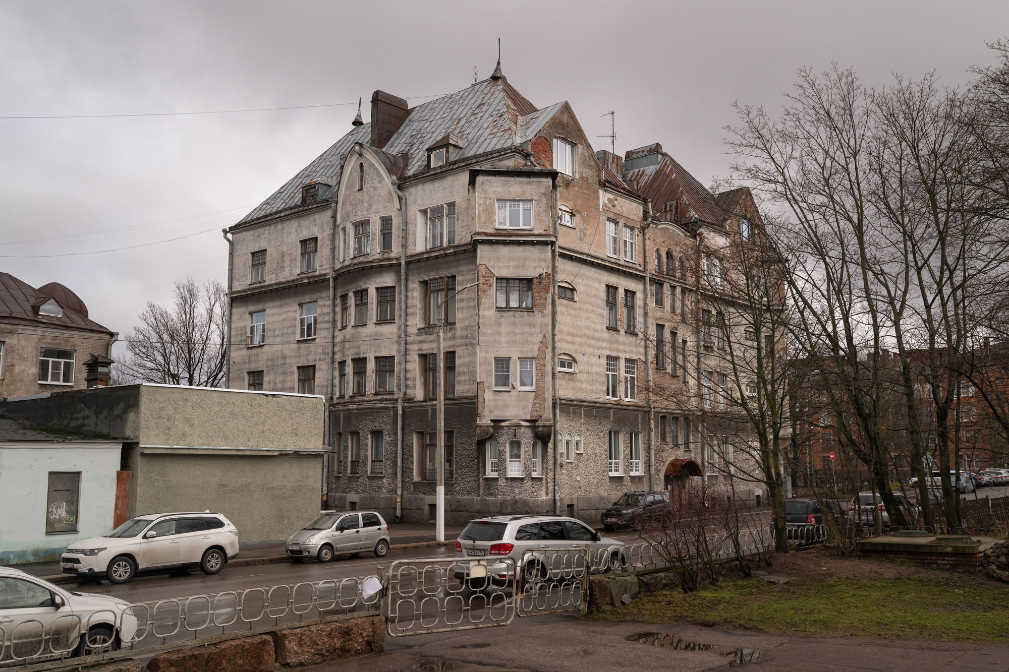 - Еще одну работу Шульмана все того же 1904 года отыщите на Вокзальной улице, 7. Этот дом с гранитным фасадом принадлежал финской фирме «Хякли, Лаллукка и Ко». Кстати, именно ее хозяин Юхо Лаллукка пожертвовал деньги на постройку библиотеки Аалто. Этот дом впечатляет разнообразием барельефом от скульптора Эмиля Халонена и своей ухоженностью.