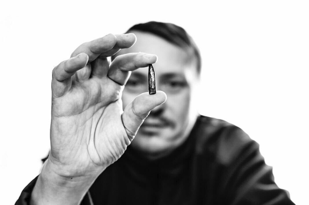 Сергей Семенов с пулей. Фото предоставлено сестрой Сергея
