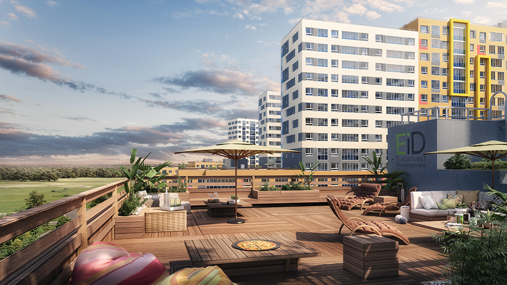 Формат комплекса называется 3iD — это концепция жилья, разработанная Euroinvest Development совместно с урбанистами, социологами и психологами жилой среды. Первая составляющая — помещения и пространства для общения с соседями. Вторая — личный кабинет с ID-идентификатором. Третья — разные планировки и варианты отделок квартир.