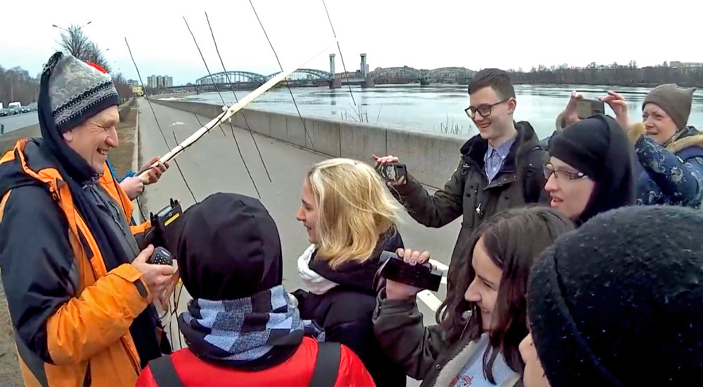 Пока один из подростков еле удерживает в руках метровую самодельную антенну, остальные столпились возле увешанной проводами легковушки. Все взгляды обращены на высокого мужчину в спортивной куртке и шапке — он проверяет стоящий на крыше машины радиоприемник. На набережной Невы Евгений Кузнецов и десятиклассники 491-й школы Петербурга ждут голоса космонавтки Анны Кикиной. Спустя пять минут МКС выходит на связь.