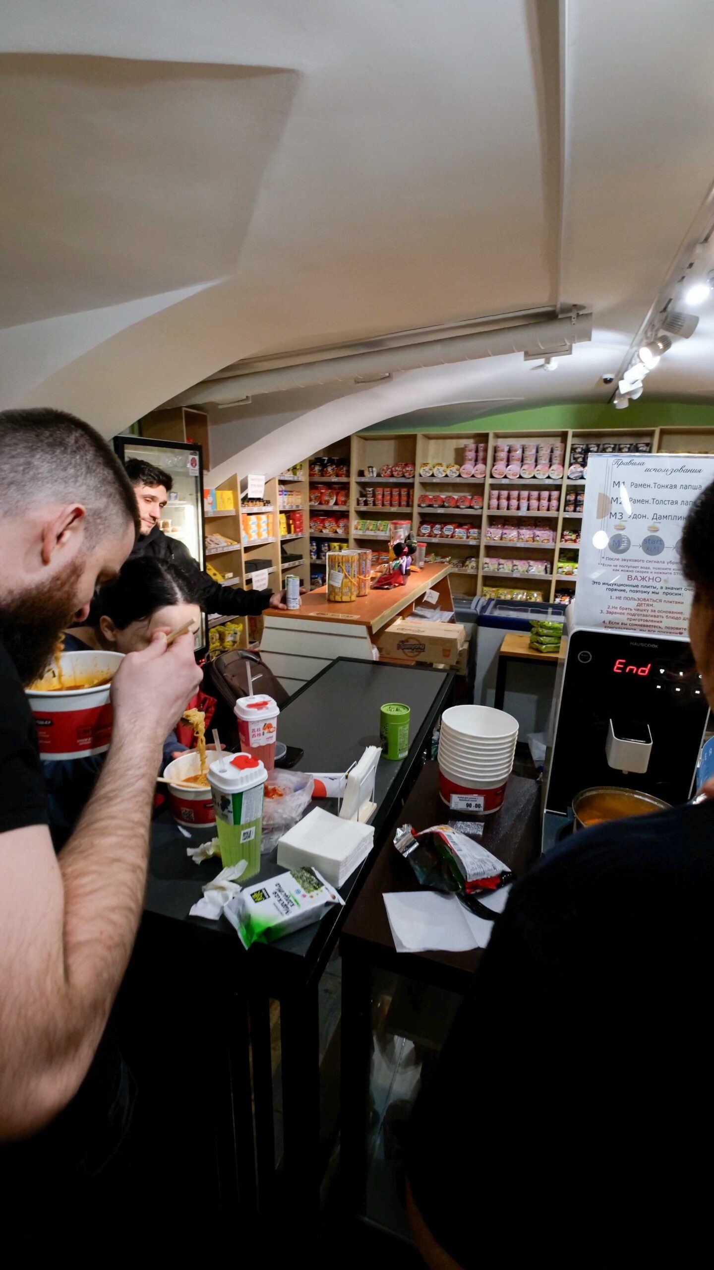 В треде она рассказала про ассортимент угощений и про гостеприимство мистера Шина. Лапшу, например, можно приготовить прямо в магазине.