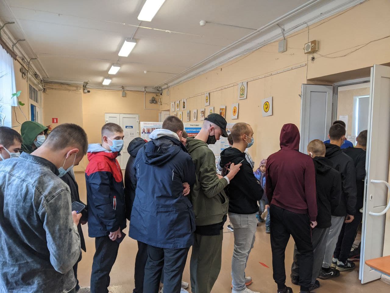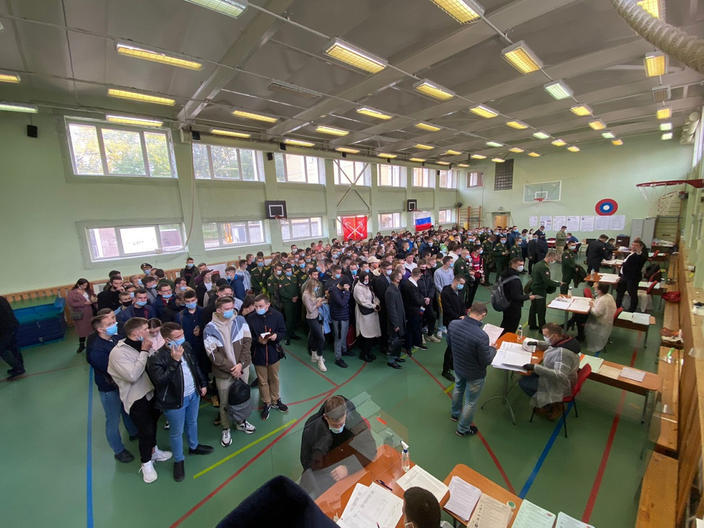 Вот как выглядел УИК № 343 в Выборгском районе — один из участков, на который 17 сентября пришло больше всего избирателей. Обратите внимание на людей в форме.