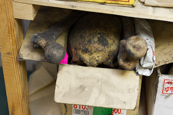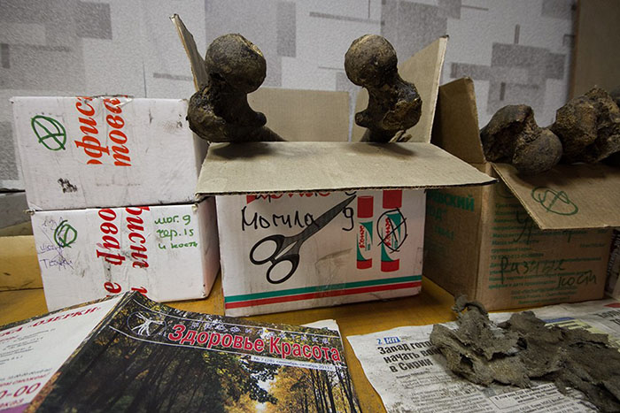 На территории Петропавловской крепости, недалеко от Зотова бастиона, в небольшом помещении уже несколько лет работают археологи. В темном узком коридоре свалены лопаты, на столах разложены газеты и инструменты, а по периметру комнат стоят стеллажи с рядами картонных коробок. На некоторых слоган производителя — «Все сложилось!», рядом с ним маркером подписан номер братской могилы, внутри темнеют почти век пролежавшие в земле кости, которые теперь хранятся в ожидании изучения. Под руководством археолога, научного сотрудника Института истории материальной культуры РАН Владимира Кильдюшевского, здесь ведутся раскопки захоронений жертв красного террора, расстрелянных в 1918–1919 годах.
