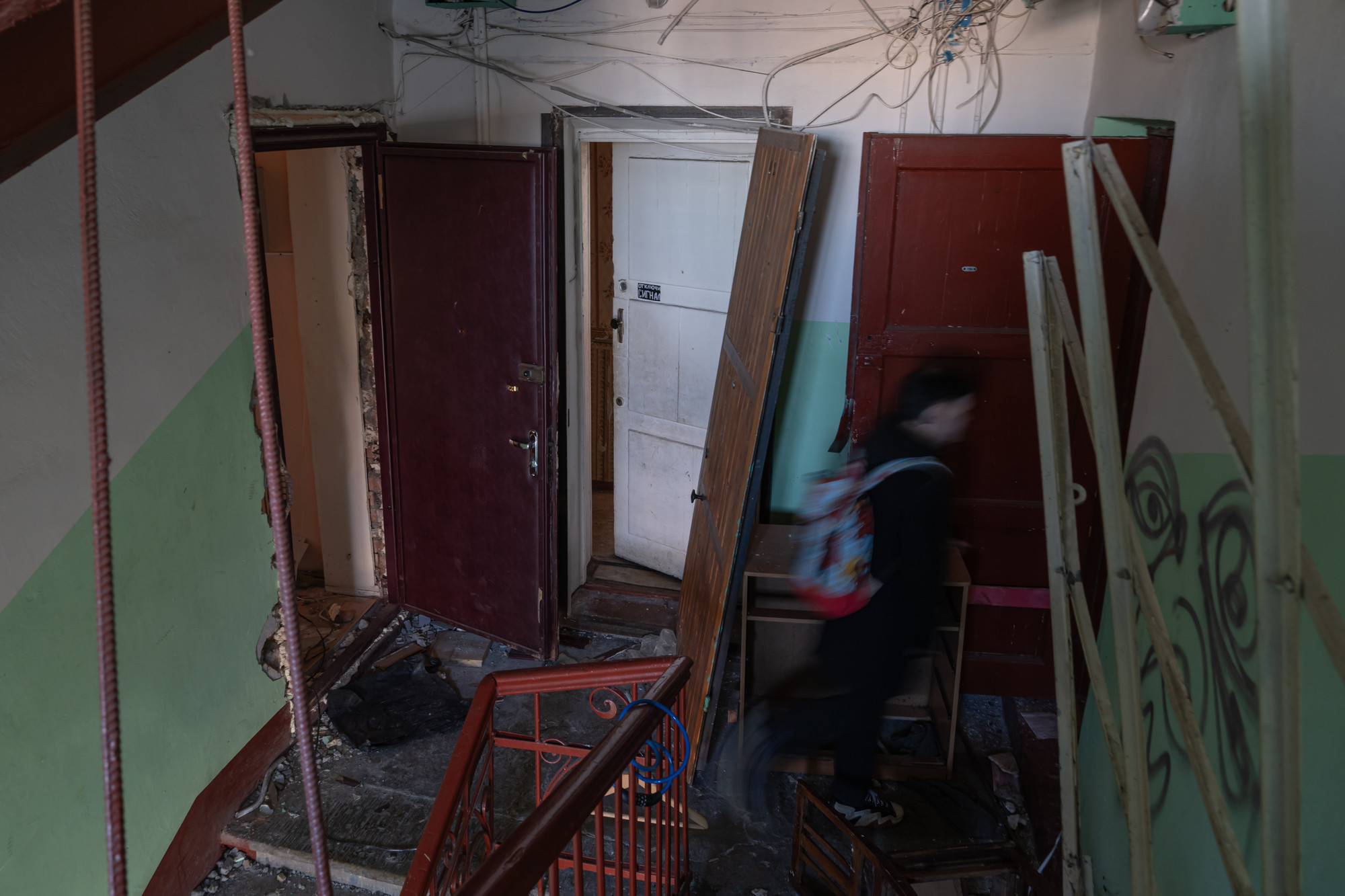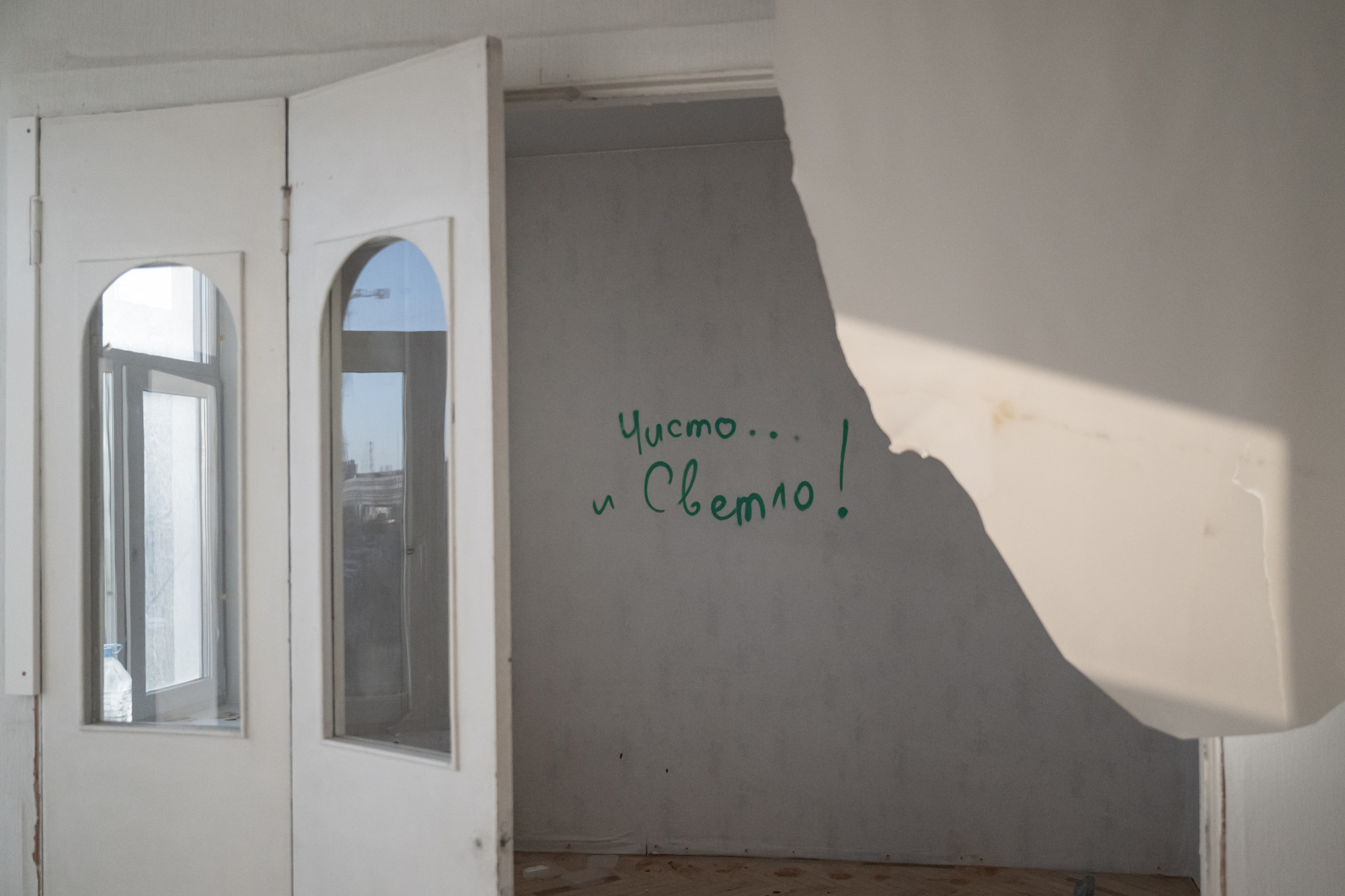 В доме 36 квартир, в каждую можно попасть — двери везде нараспашку. Говорят, пару недель назад их вскрыли «люди с ломиками». Двери некоторых квартир и вовсе выломали и оставили на лестничных клетках.