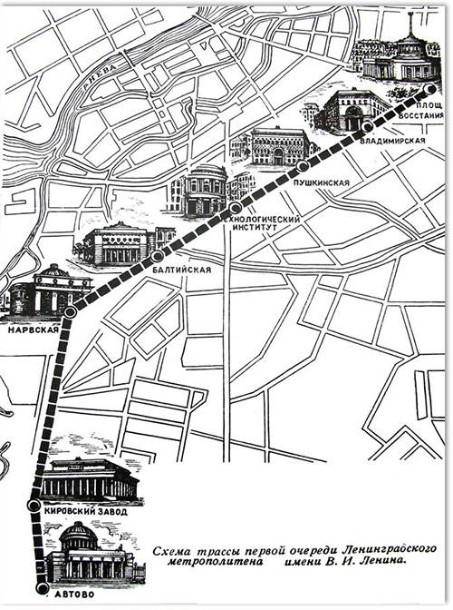 Схема трассы первой очереди Ленинградского метрополитена. Фото: общественное достояние