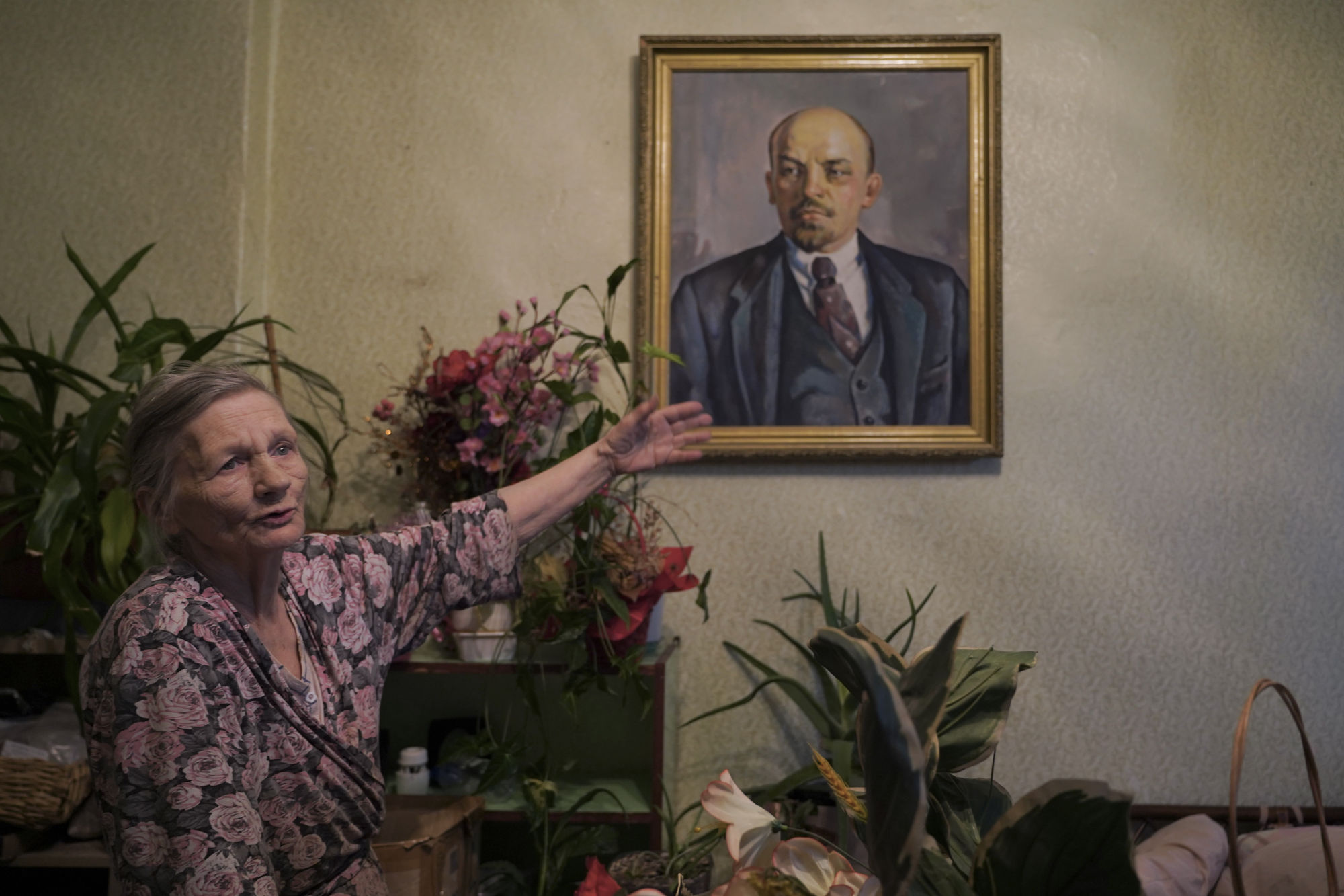 В другой пустующей комнате Людмила обустроила оранжерею. Пенсионерка перенесла туда цветы, которые дома оказалось некуда ставить. Женщина хочет перевезти цветы и в новое жилье, но не знает, хватит ли там места. Посреди растений, в самом центре комнаты висит портрет Владимира Ленина: