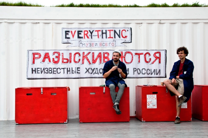 В Новой Голландии припарковались два ярко-красных грузовика «Музея всего». До 19-го числа включительно приглашенное жюри, в которое входят Пётр Белый, Дмитрий Озерков, Анна Матвеева и куратор «Музея всего» Джеймс Бретт, будут отбирать работы непрофессиональных и до сих пор непризнанных художников. Прийти и продемонстрировать своё творчество может любой желающий, не имеющий специального образования.