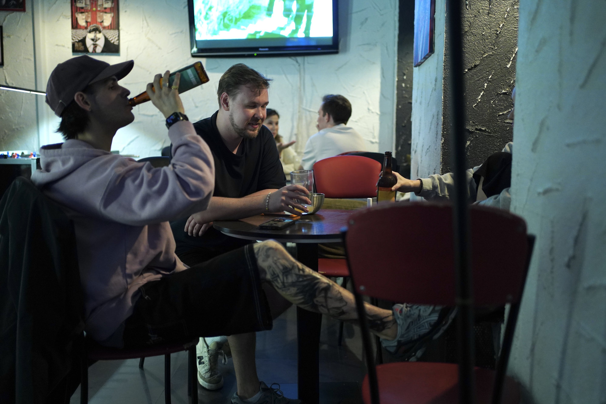В еще одном местном баре, под названием «У Попая», посетители расходятся во мнении о дееспособности закона. Одни уверены, что «все закроют к херам» и «сегодня последний день, когда можно отпраздновать». Другие возражают: «Ограничить могут, но закрывать… Ты как будто не в России живешь. Если такая политика сверху идет то, конечно, что-то закроется, но чтобы все – такого не будет».