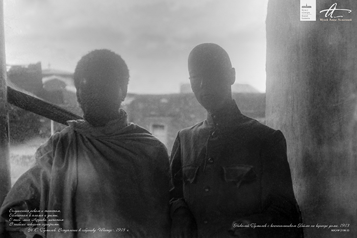 Николай Гумилев был не только поэтом, но и этнографом. В 1913 году он совершил путешествие в Абиссинию и привез оттуда целую коллекцию редкостей: фотографии, рукописи, вещи местных жителей. В то время он работал над «африканским» поэтическим циклом: произведения из него составили книгу «Шатер», последний прижизненный сборник поэта. Посвященная этому путешествию выставка работает одновременно в саду Фонтанного дома и Музее антропологии и этнографии. Фотографии поэта вступают в диалог с современными снимками Африки петербургского фотографа Татьяны Федоровой, а дополняют их выдержки из стихов Гумилева.
