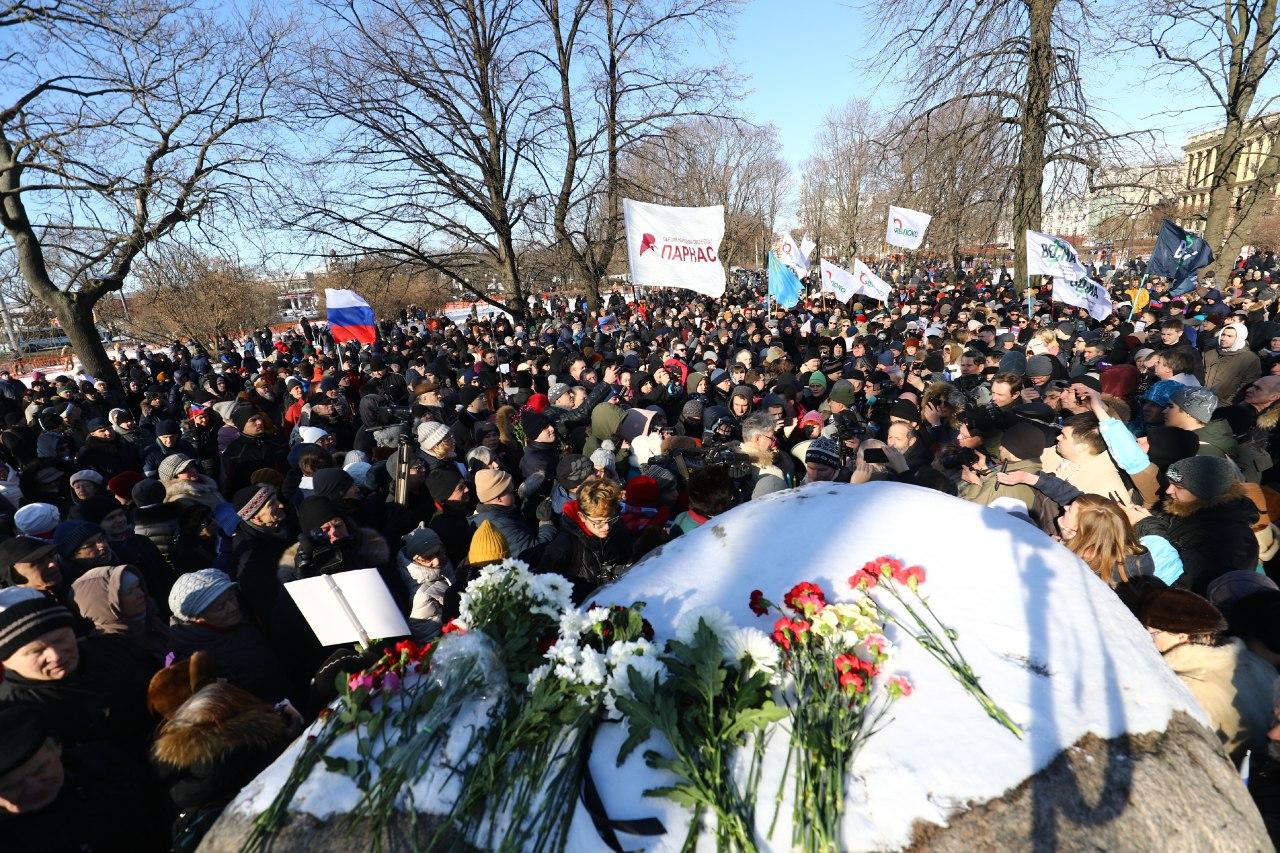 Днем 29 февраля в Петербурге состоялся марш памяти оппозиционного политика Бориса Немцова, застреленного пять лет назад. На акцию вышло около 2 тысяч человек. Они прошли колонной до Соловецкого камня на Петроградской стороне — памятника жертвам политических репрессий и борцам за свободу. К нему возложили цветы.