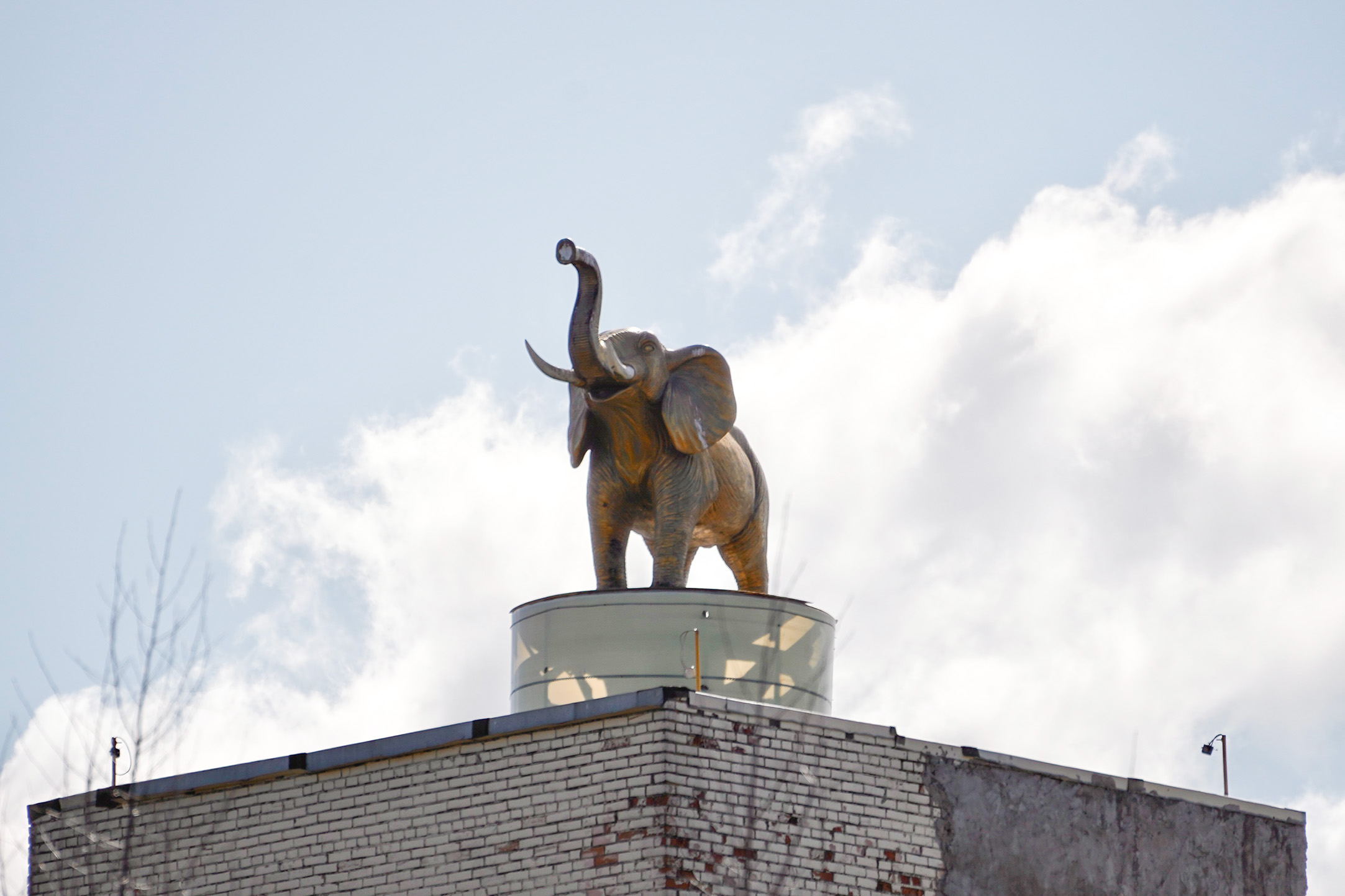 Если ехать по Красносельскому шоссе в сторону Пушкина, в отдалении можно заметить скульптуру слона на заводском здании. «Позолоченный» слон стоит на обветшавшем постаменте прямо на крыше. Скульптура стала местной достопримечательностью, обзавелась карточкой на «Яндекс Картах», но мало кто знает, как и почему слон появился в Пушкине. «Бумага» разобралась, как так вышло.