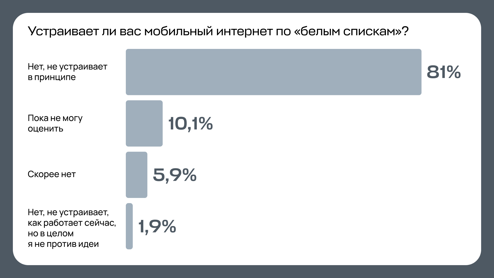 Более того, 87,3 % читателей «Бумаги» настроены пессимистично. Они уверены, что блокировок и отключений со временем станет только больше.