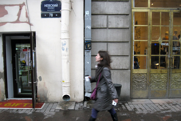 Петербургский художник и иллюстратор Миша Маркер снова вывесил картину на Невском проспекте.