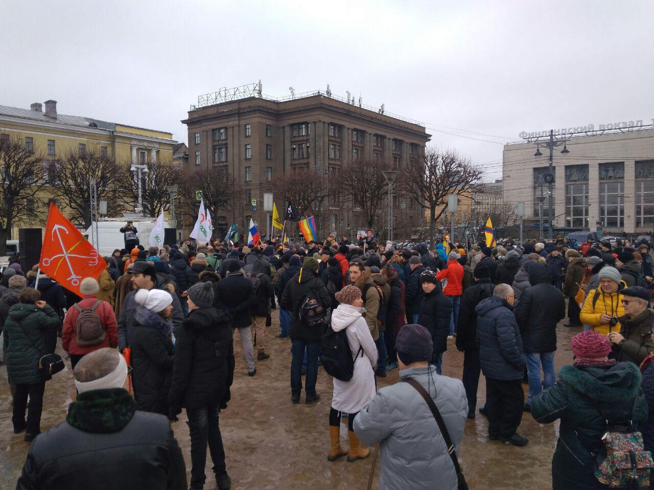 На площади у Финляндского вокзала в 14:00 началась акция памяти Бориса Немцова. Как сообщает корреспондент «Бумаги», на согласованном марше собралось больше тысячи человек. По оценкам организаторов, на площади было около 3 тысяч человек. Акция прошла без задержаний.