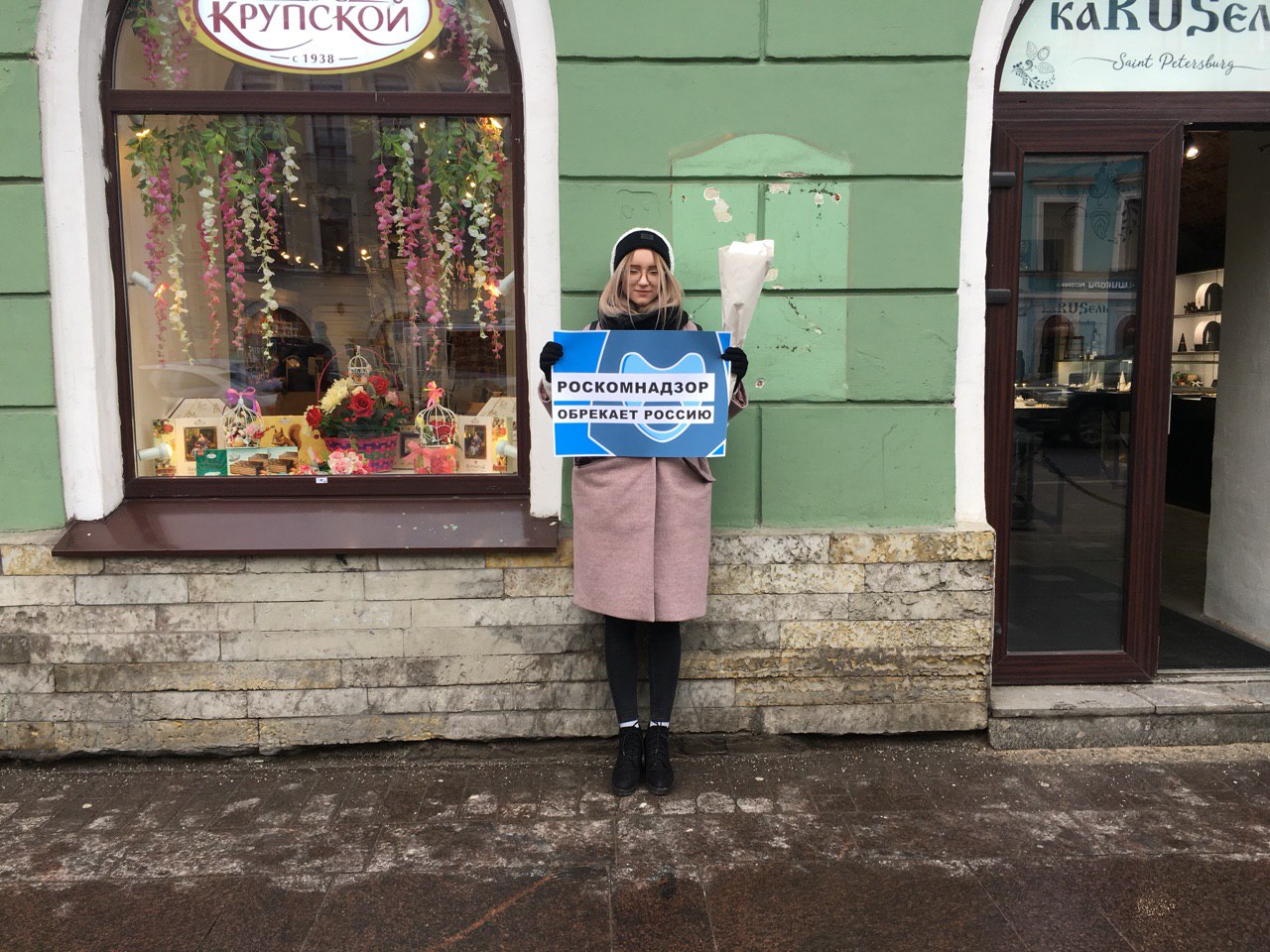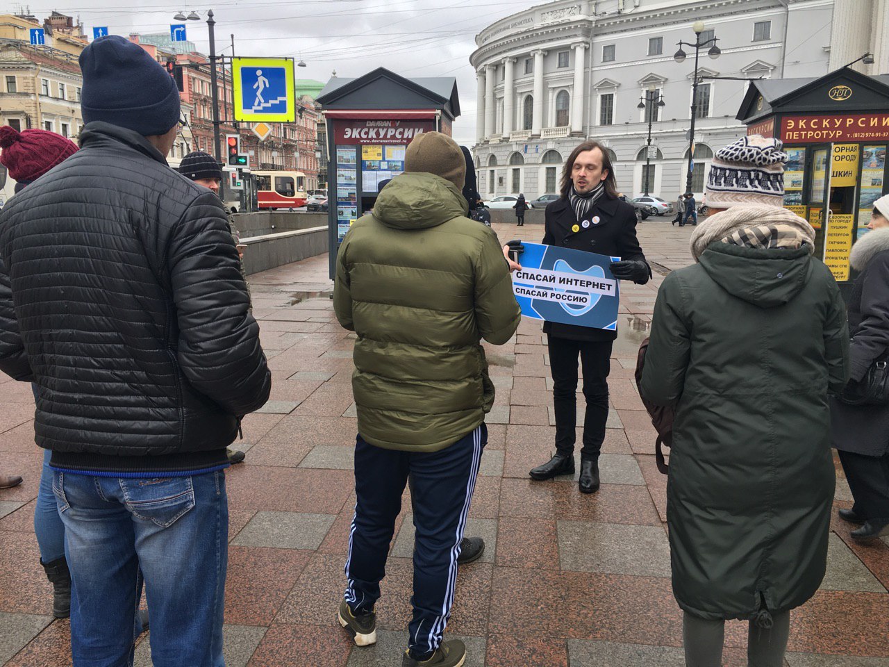 Всего на Невский проспект вышли семь активистов партии. Они пришли с плакатами «Изолируйте Клишаса», «Свобода — не экстремизм», «Роскомнадзор обрекает Россию». Все участники пикетов выступают против изоляции рунета.