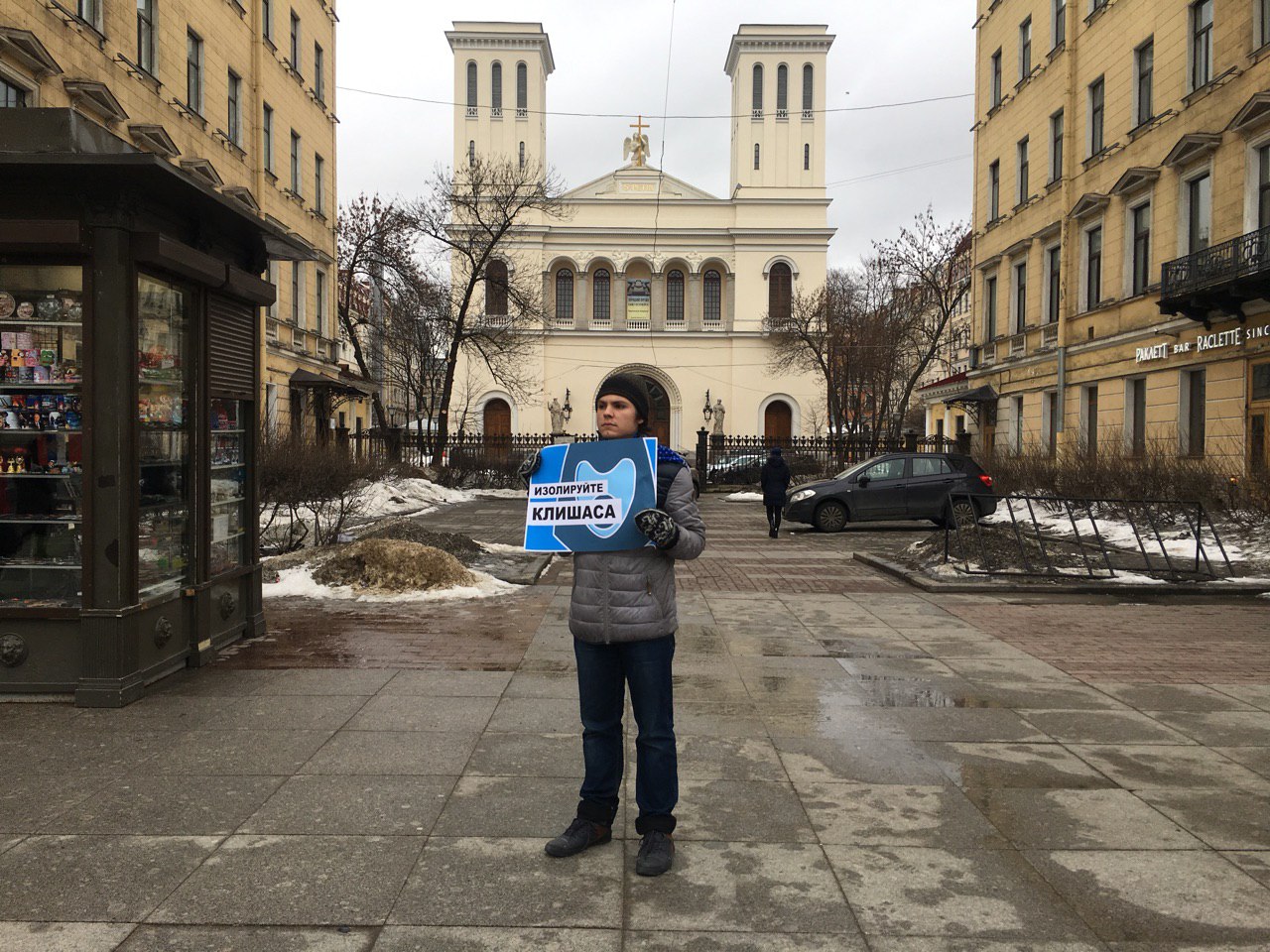 В Петербурге 10 марта члены Либертарианской партии вышли на Невский проспект с пикетами против законопроекта об автономной работе российского сегмента интернета. Один из его авторов — сенатор Андрей Клишас.