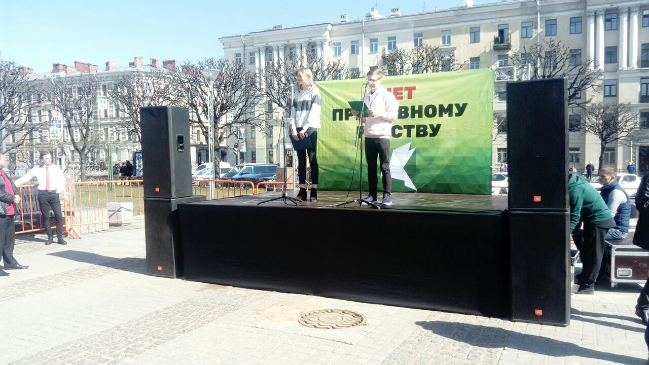 На сцене выступили представители «Яблока» Александр Шадрин, Елена Попова и Александр Беликов из движения «Сознательные отказчики», а также спикеры от Либертарианской партии. Они говорят о насилии в армии и смерти солдат.