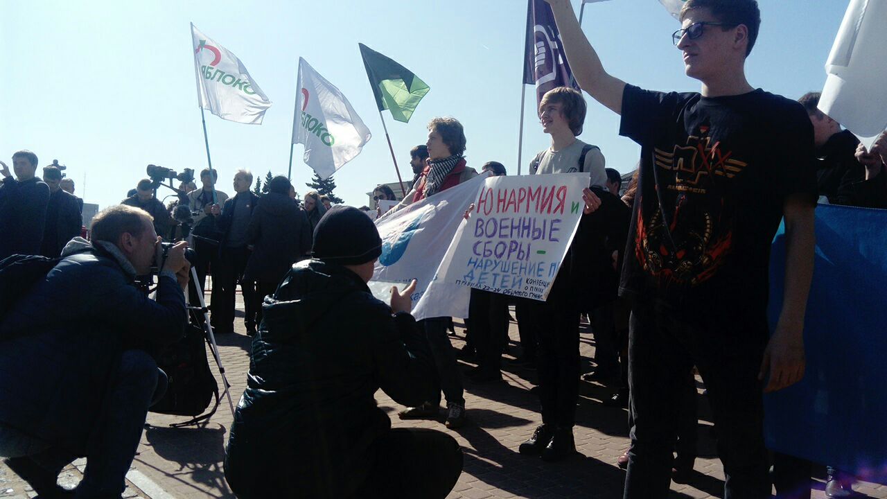 «Власть сейчас ведет две войны: на востоке Украины и в Сирии гибнут наши парни. Служба в армии — это тюрьма. Его открывают от семьи, родных, девушки или парня. Они год пересобирают автоматы, ничему не учатся», — заявил представитель «Яблока» Александр Шадрин.