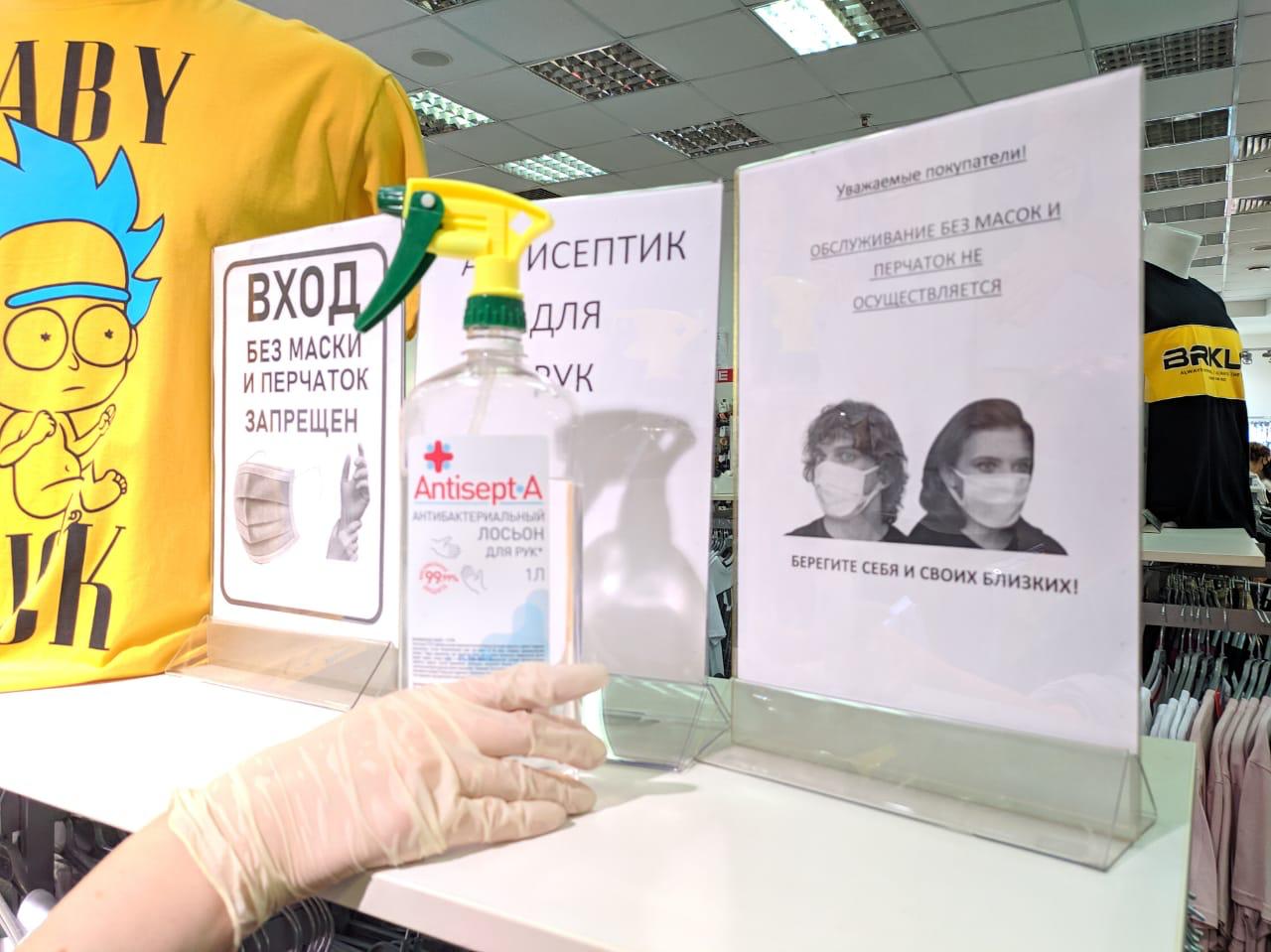 В Петербурге проверили, носят ли в торговых центрах маски и перчатки. Нарушителям выдали 400 памяток