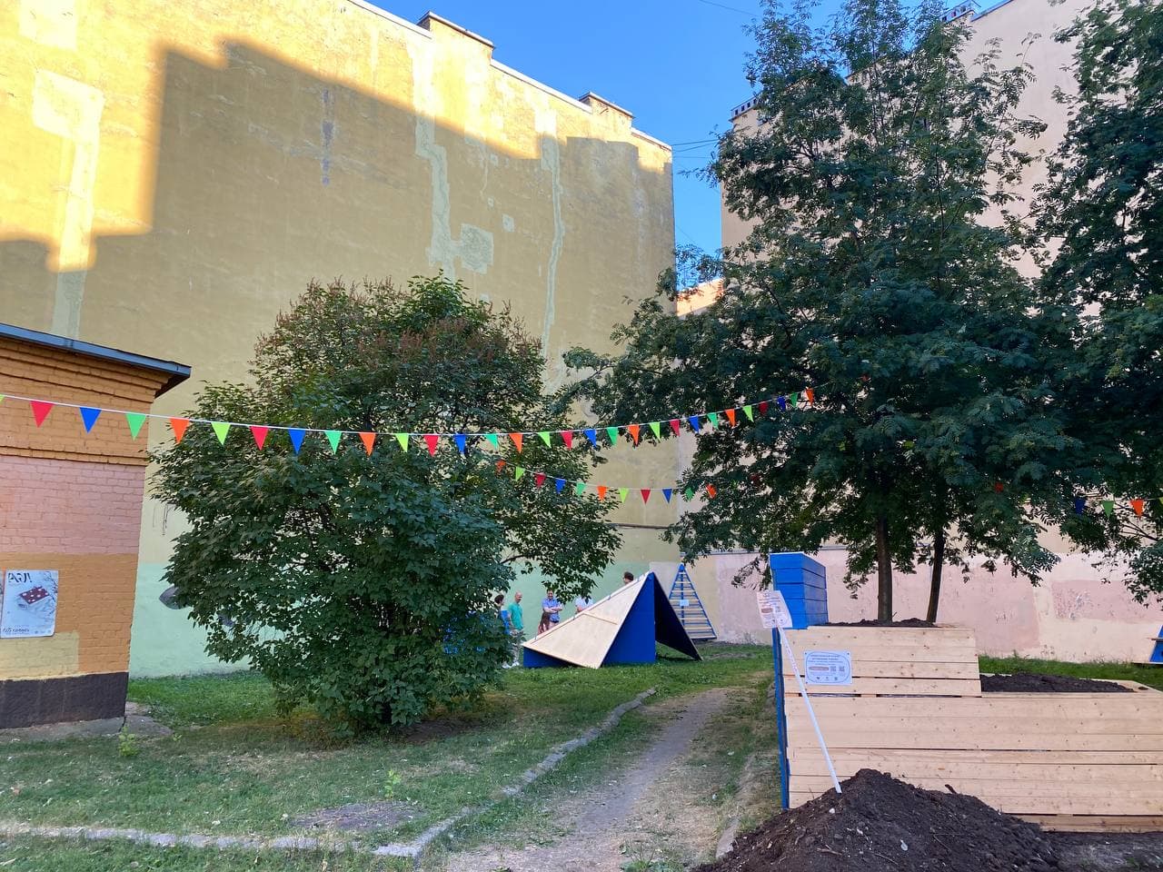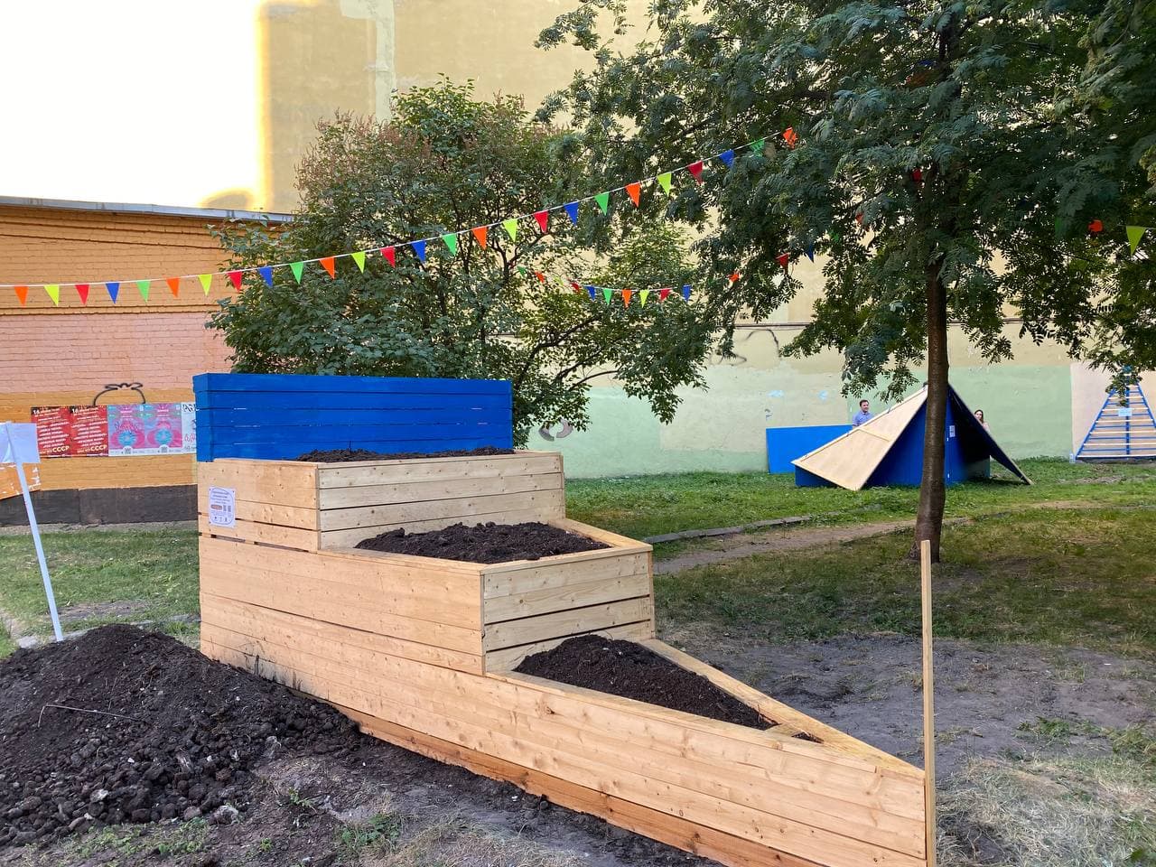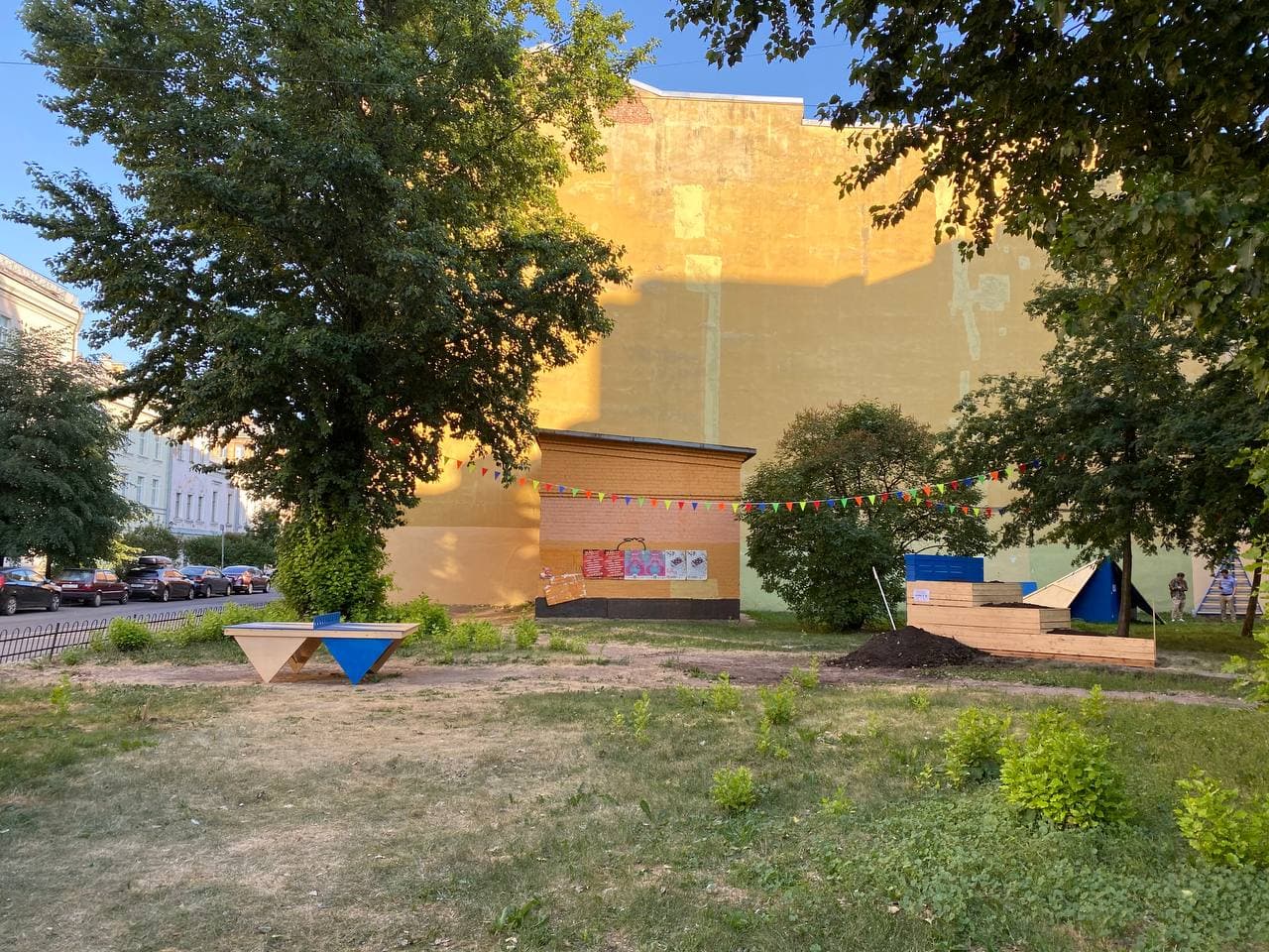 Местные жители благоустроили сквер у клуба «Космонавт» — теперь там есть амфитеатр, домик для котов и общественный огород