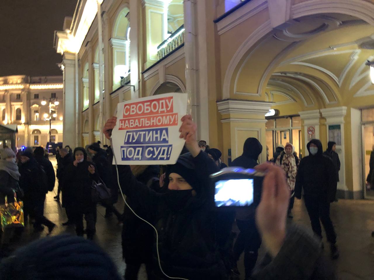 У Гостиного двора проходит акция в поддержку Алексея Навального. Полиция задерживает ее участников. Обновлено