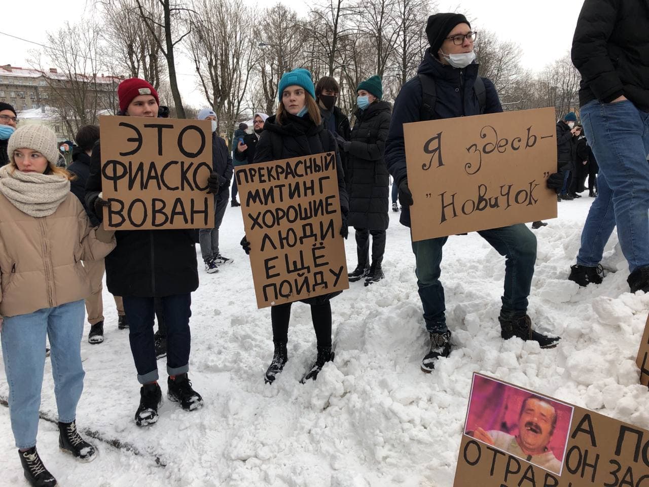 На акции протеста 31 января у ТЮЗа собралось от 3 до 4 тысяч человек, задержаны около 70 участников. Вот с какими плакатами пришли на Пионерскую площадь петербуржцы.