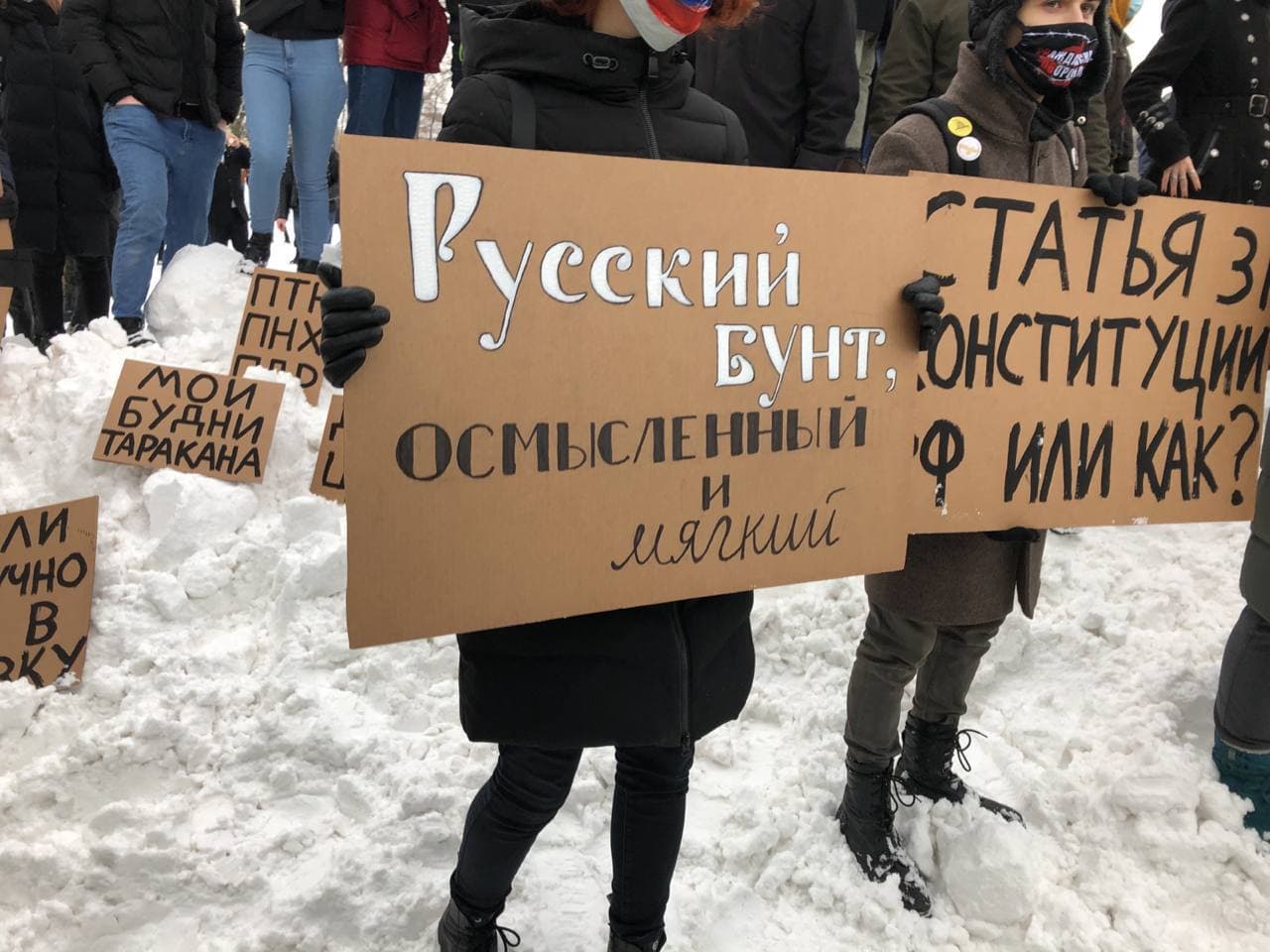 «Русский бунт, осмысленный и мягкий» — и другие плакаты на митинге 31 января