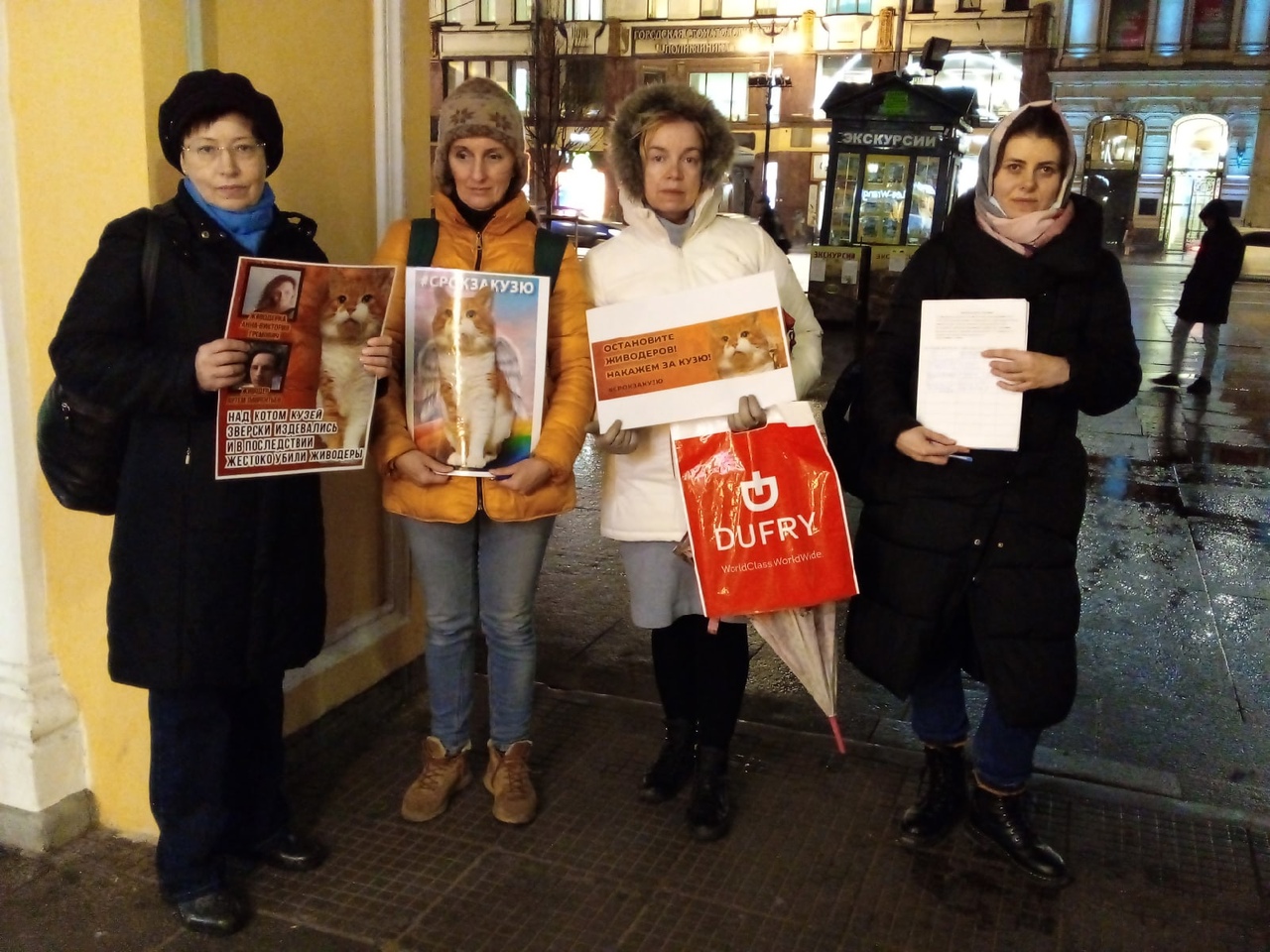 Как убедилась «Бумага», в чате сбора подписей состоит более 50 петербуржцев. Их обращение требует от суда назначить обвиняемым по 5 лет лишения свободы — как объясняла активистка и зоозащитница Ольга Киритенок, «чтобы [другие] знали: за это можно получить реальный срок». Горожане уже несколько раз выходили к станции метро «Гостиный двор», следующий выход запланирован на вечер среды, 17 ноября.