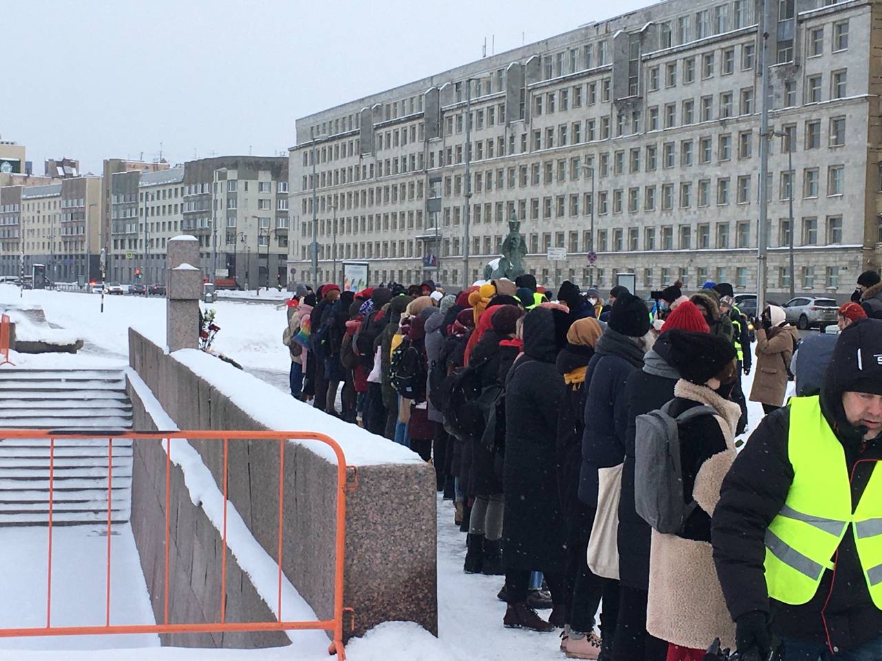 В Петербурге на Воскресенской набережной у памятника жертвам политических репрессий прошла акция «Феминистская цепь солидарности». Об этом сообщает корреспондент «Бумаги».