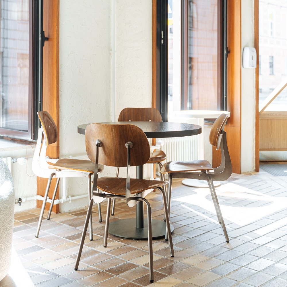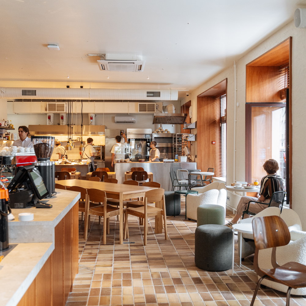 Помещение на 60 посадочных мест оформила Мария Качалова из бюро Aurore: дизайн получился светлым, пол выложили кирпичом, а в зале выставили мебель разной стилистики. Некоторые предметы интерьера создало петербургское бюро Delo Design.