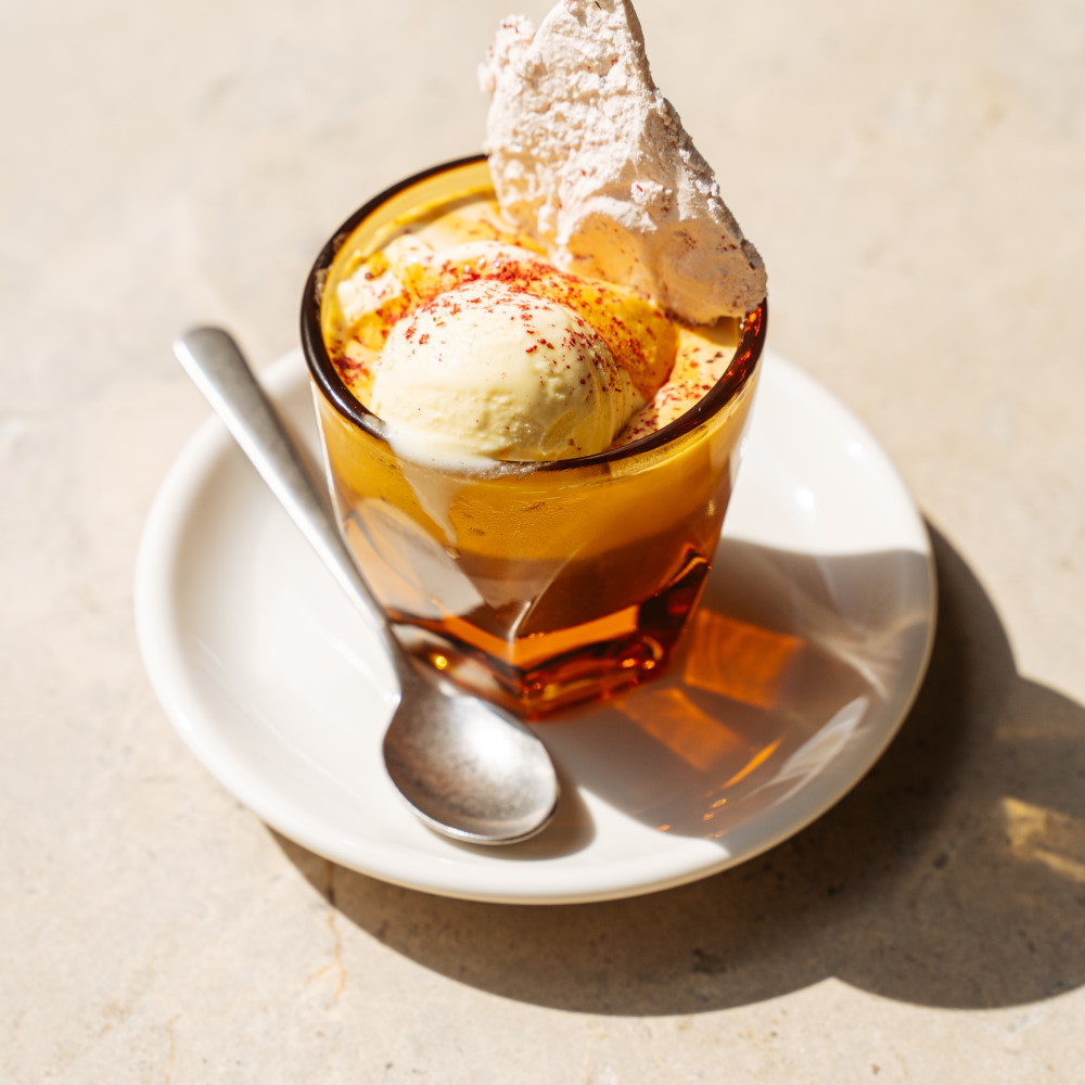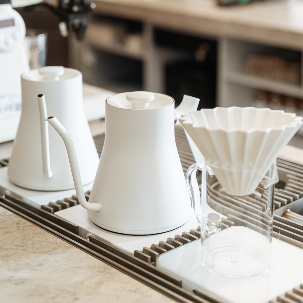 Кухню возглавил шеф Константин Булычев. В кафе делают собственную выпечку, также посетителям доступны завтраки: омлет с беконом и моцареллой, овсяная каша с клубникой на кокосовом молоке, бриошь с уткой, баскский чизкейк с крыжовником и другие позиции. В дальнейшем в кофе запустят и вечернее меню.