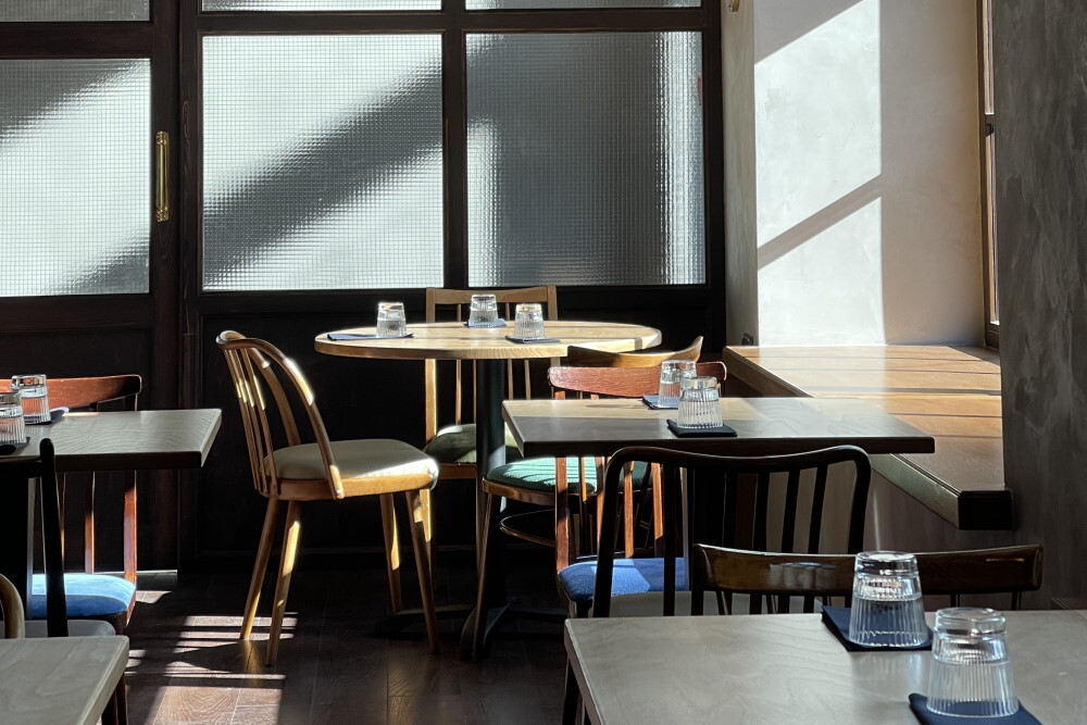 Помещение рассчитано на 40 посадочных мест, интерьер оформили с помощью редких вещей и элементов — например, отреставрированных винтажных стульев. Старинный финский комод нашли в Ленобласти, а керамическую посуду привезли из Бельгии.