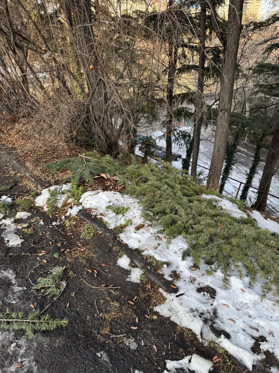 На улицах много сломанных веток, упавших с деревьев. Как заметила Paper Kartuli, в каких-то районах их убирают быстро, а где-то они лежат по нескольку дней.