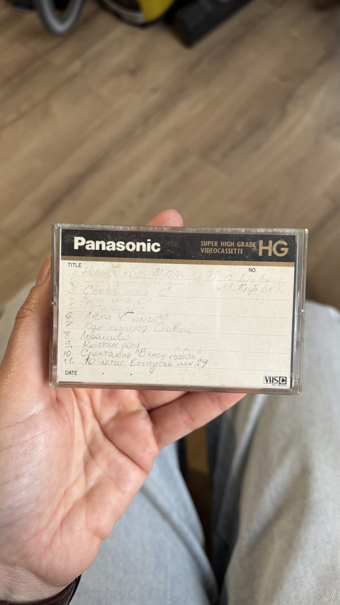 В этом магазине я пыталась найти кассеты с записями «Аншлага» и около двух часов лазала со стремянкой по высоким полкам. За это время мне попалась лишь кассета с надписью «Новый год 1995» — я ее отложила, потому что подумала, что это запись новогоднего эфира, которая подойдет для моей коллекции. Совсем без покупки уходить было неловко, и я решила купить хотя бы ее.