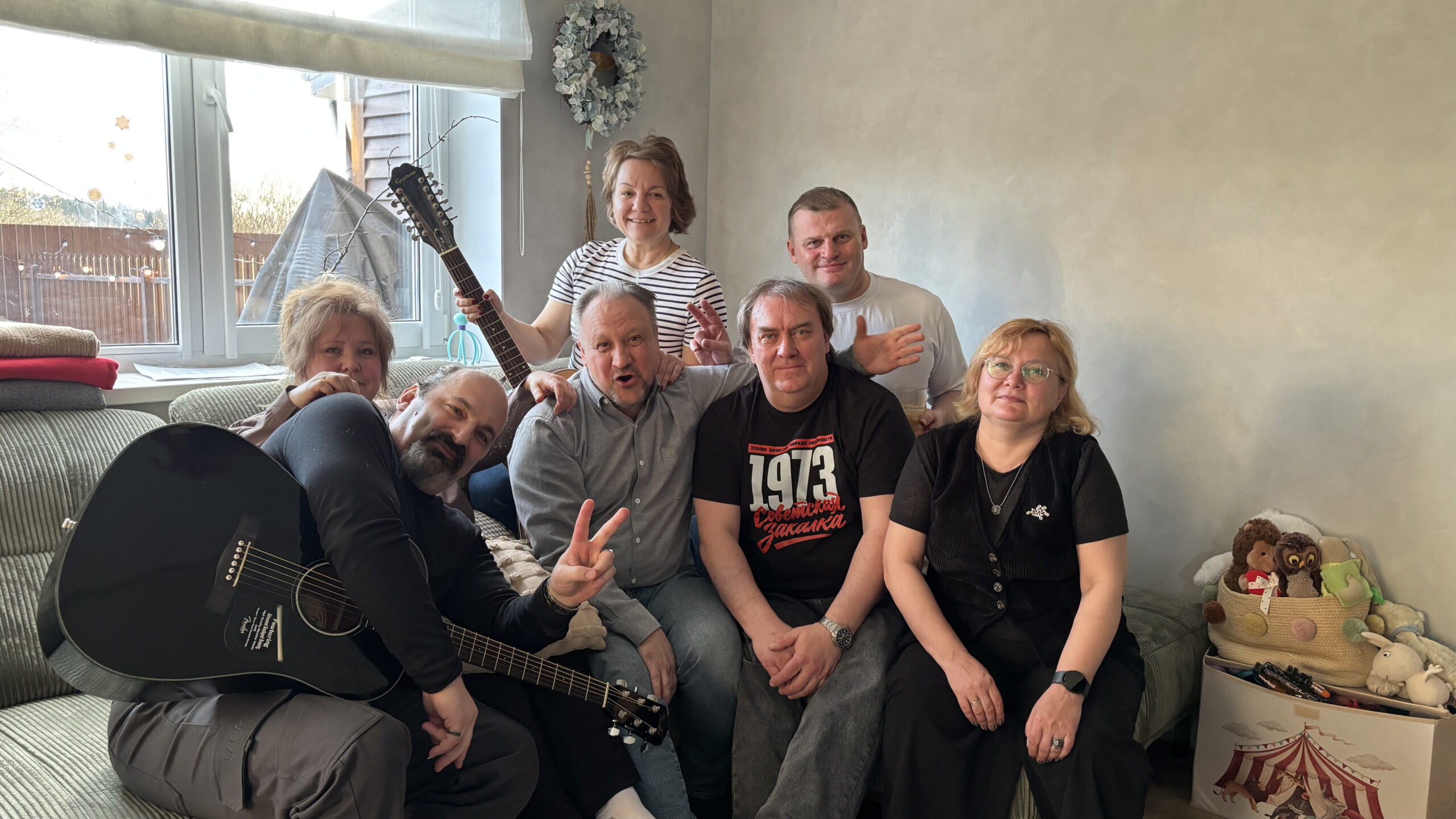 Жена Славы Лиза накрыла стол — был оливье, студень. В конце вечера мы посмотрели запись видео, а ребята играли на гитаре, рассказывали истории из своей юности, пели и танцевали.
