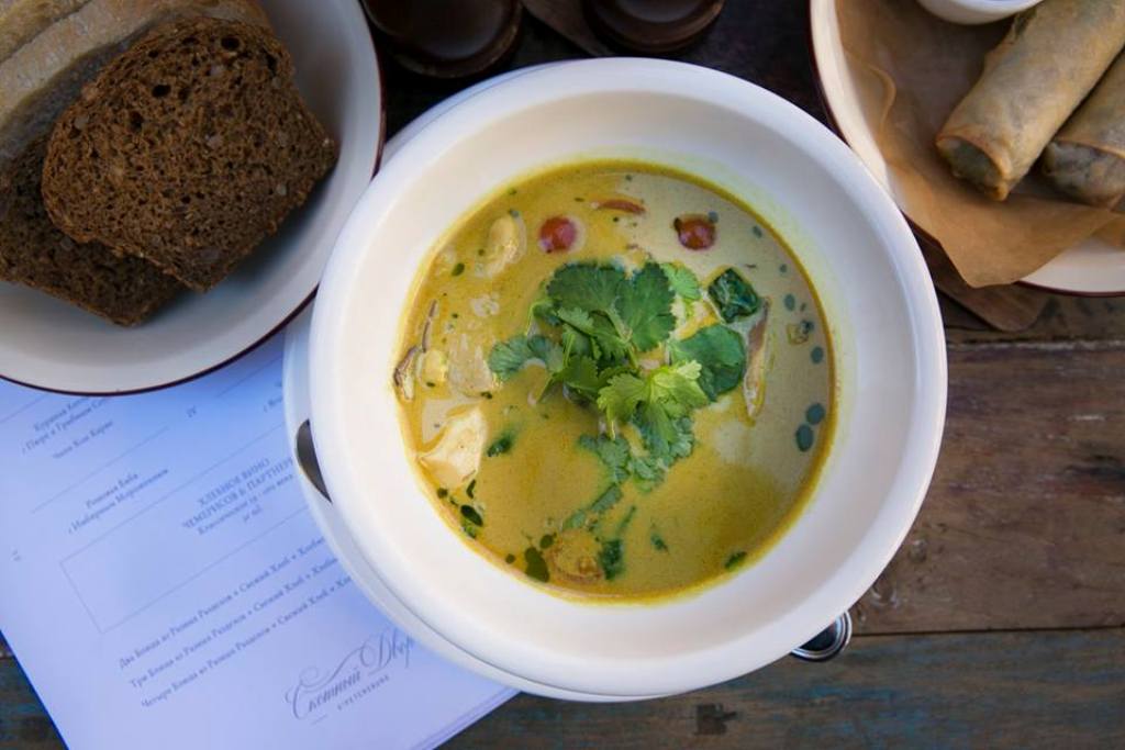 Ресторан «Скотный двор», в котором подают тайский суп с куриным филе и шиитаке, 1 января будет работать с 18:00. Блюдо стоит 310 рублей.