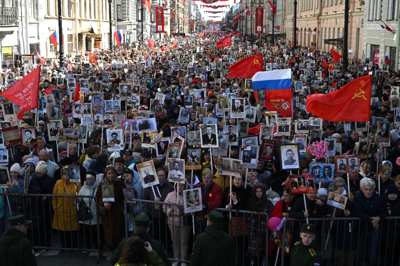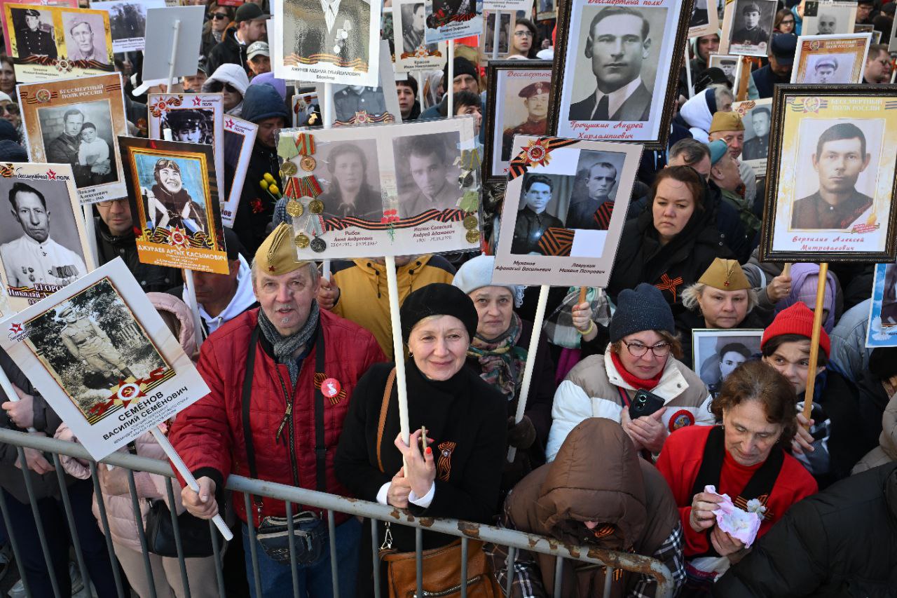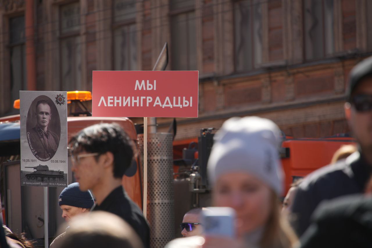 Корреспонденты «Бумаги» прошли в колонне «Бессмертного полка». Шествие продолжалось два часа. По оценке администрации Петербурга, в нем участвовали 1,1 миллиона человек — «рекордное число» в юбилейный год 80-летия победы. Прошлая акция, 2022 года, по официальной информации, собрала миллион участников. То же самое власти говорили про «Бессмертный полк» 2019 года.