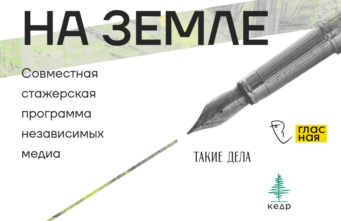 «НА ЗЕМЛЕ» — это совместная стажерская программа независимых медиа «Такие дела», «Кедр» и «Гласная». Она подойдет для учащихся журфаков, начинающих авторов, активистов или тех, кто решил вернуться в профессию после перерыва.
