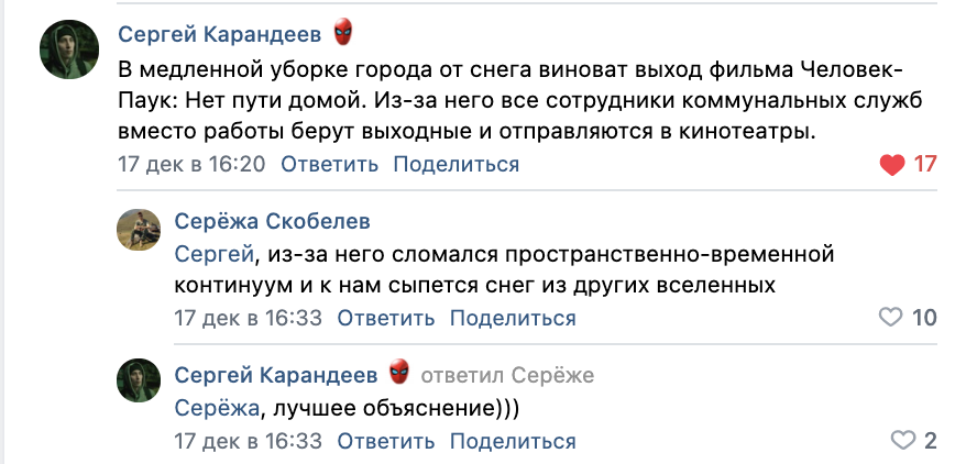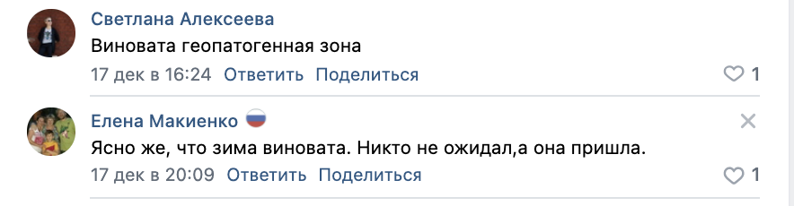 Больше всего реакций собрал список из девяти причин медленной уборки снега. Автор винит Америку, рептилоидов и майя. Возможно, в декабре 2021 года были задействованы все они.