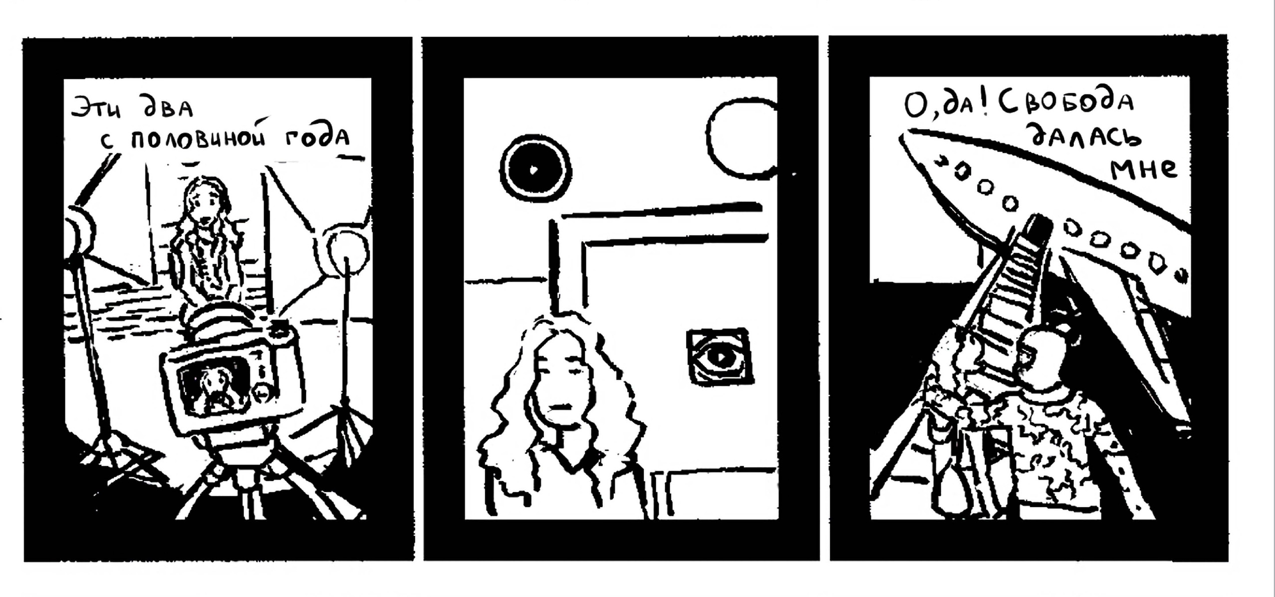 Поэтому пришлось погружаться в воспоминания и просто картинка за картинкой, страница за страницей, рисовать, как всё происходило. Я восстанавливала всю историю: что я подумала в тот момент, что почувствовала. Это в общем-то один из способов работы с травмой при ПТСР — когда человек, может быть, впервые рассказывает свою историю, облекает ее в слова. Я это сделала и мне стало легче.