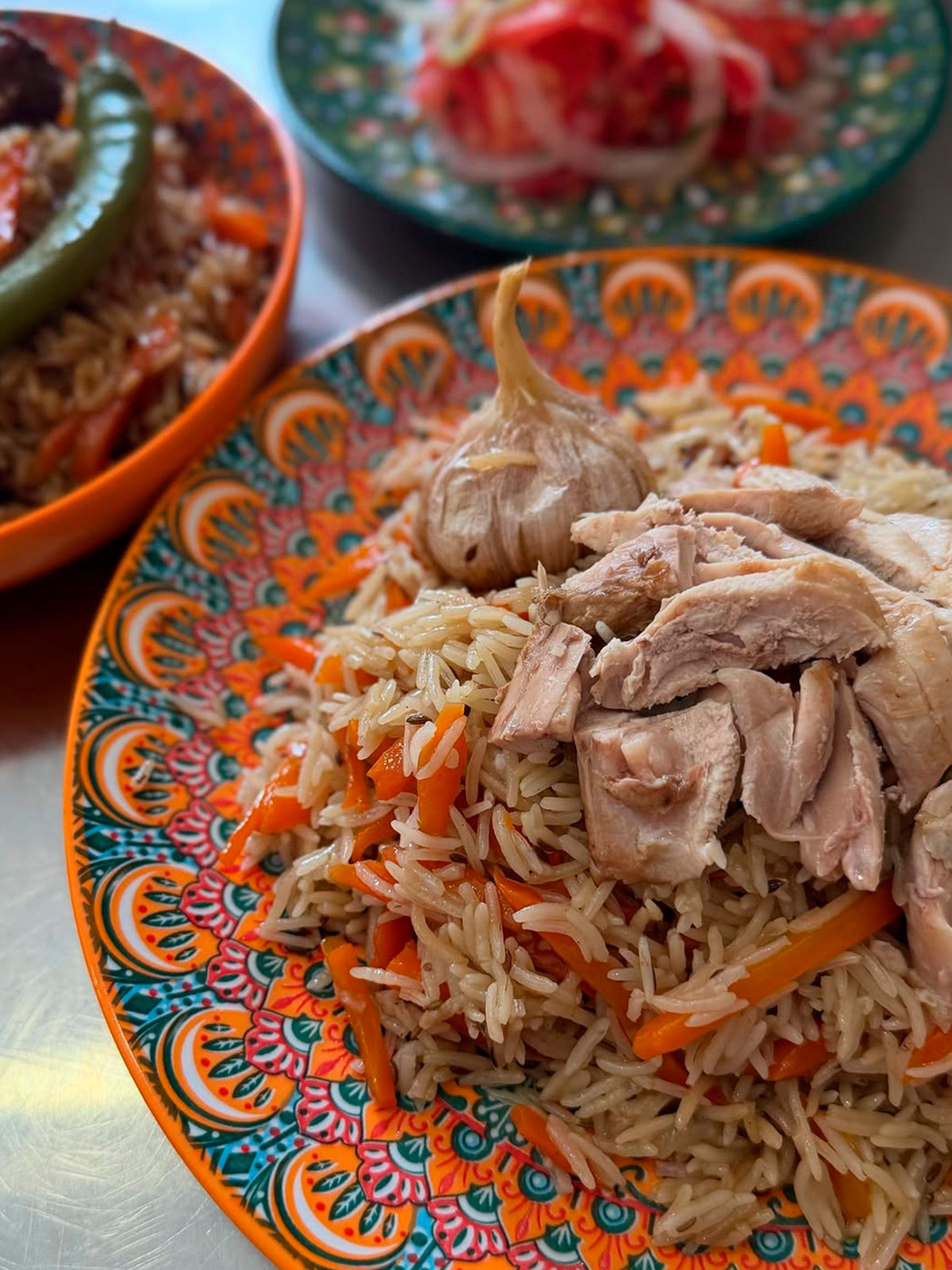 Что заказать: узбекский праздничный плов — 18 лари, манты с мясом — 18 лари (6 штук).