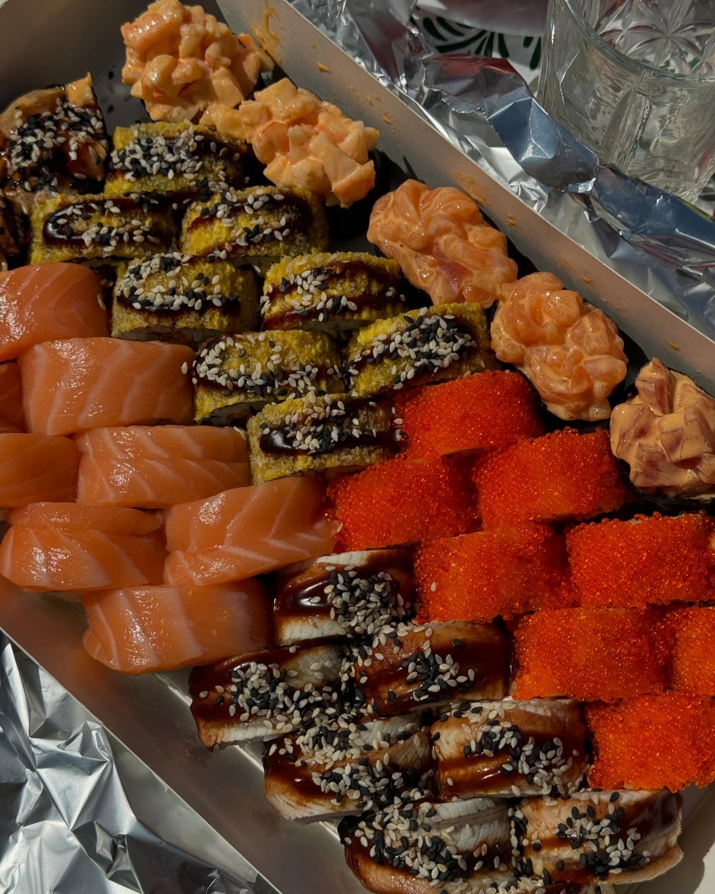 Повары — очевидно, фанаты сырой японской кухни, поэтому меню продолжает развиваться и прирастать новыми видами роллов, нигири и гунканов. В ближайшее время ожидаем запуск первой офлайн-точки в городе, предположительно в Ваке.
