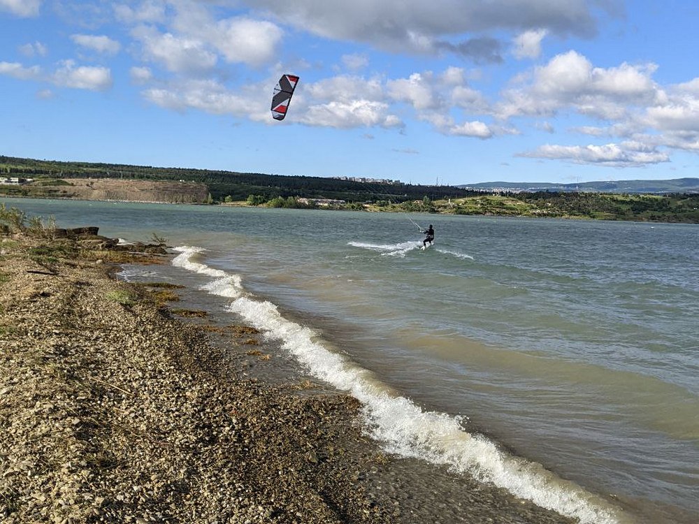 На Тбилисском море ветер довольно нестабильный, а когда он есть, то часто довольно порывистый либо слишком сильный. Зато здесь красивая голубая вода из горных рек, да и от города легко добраться.